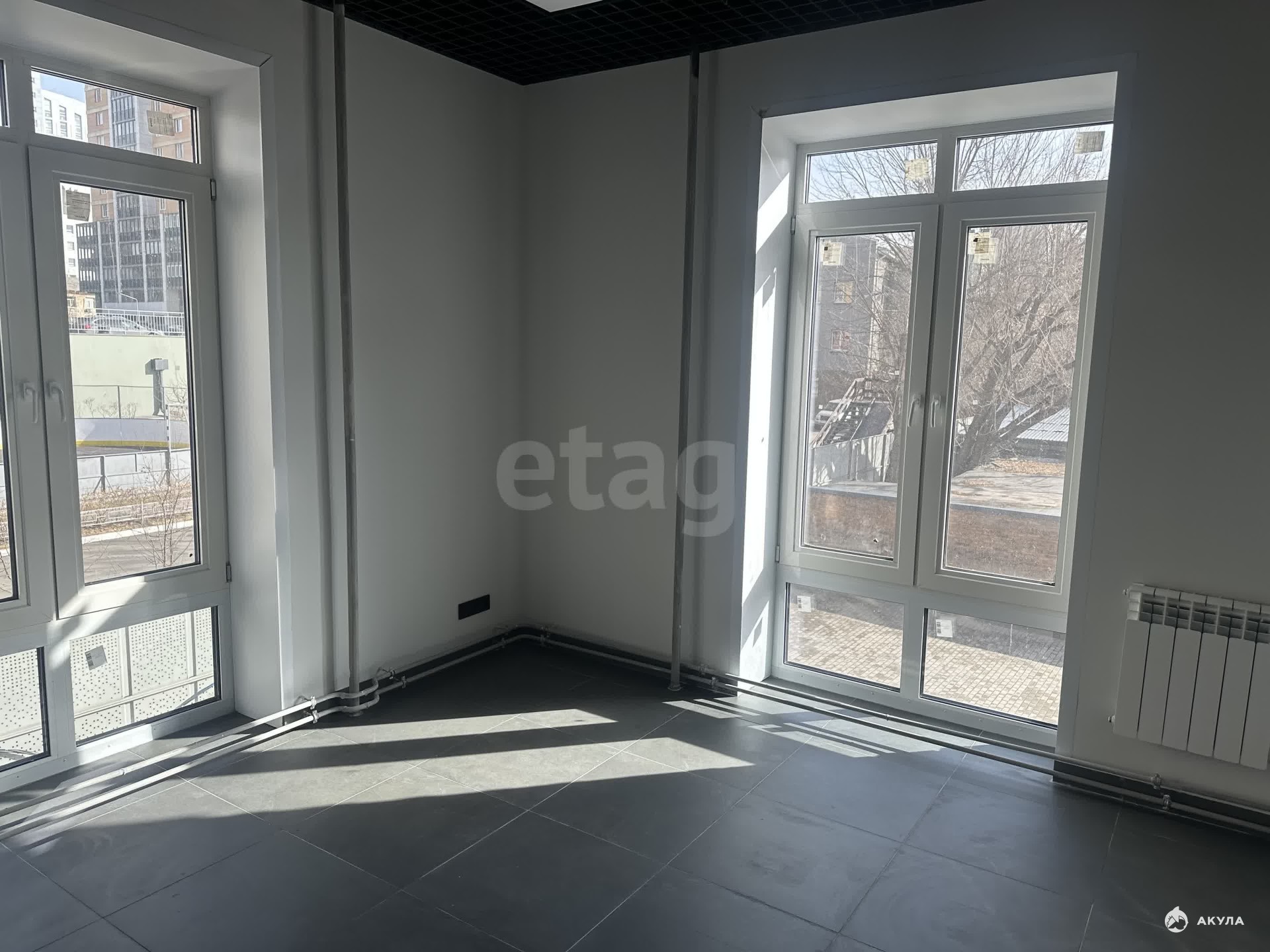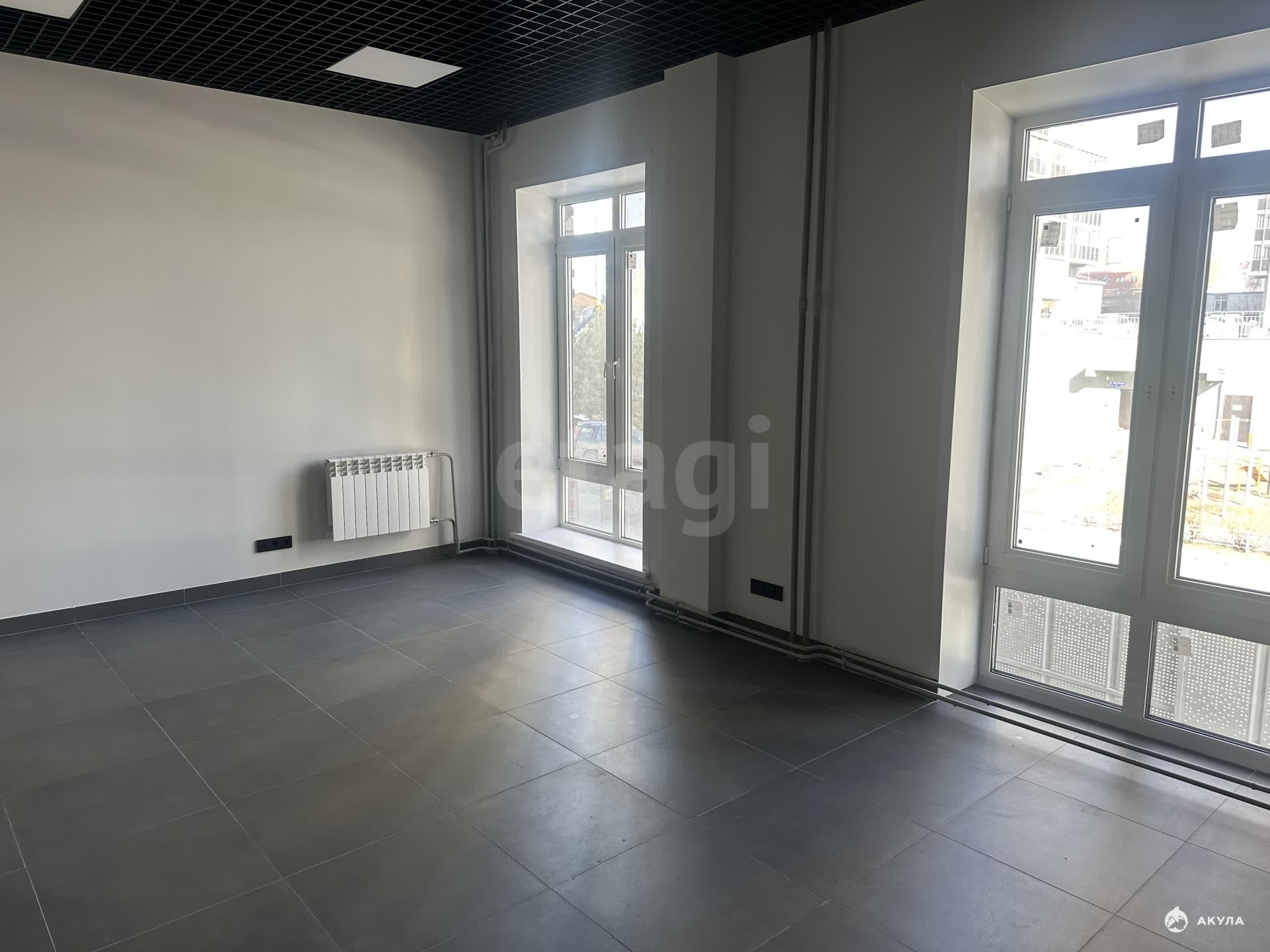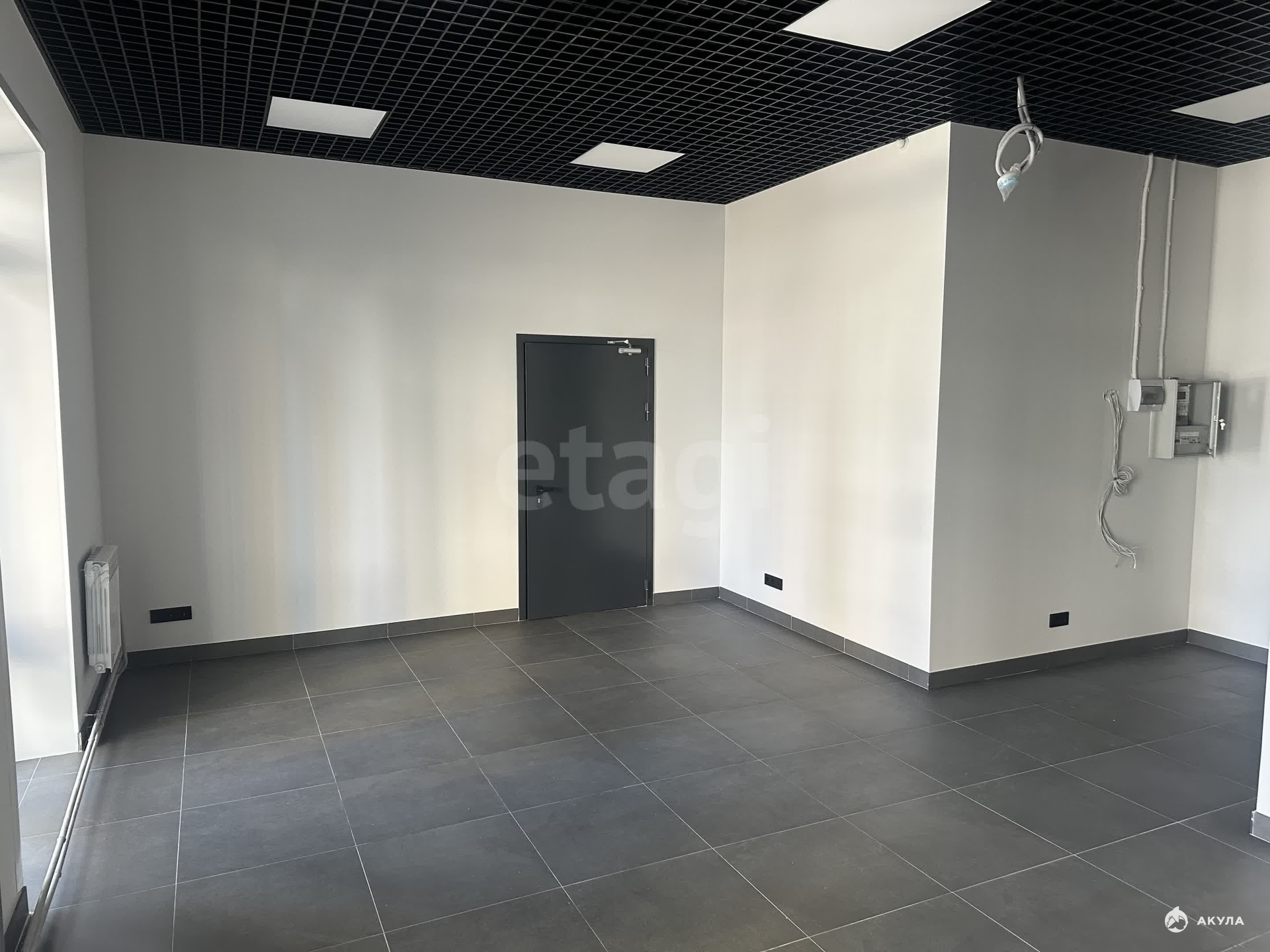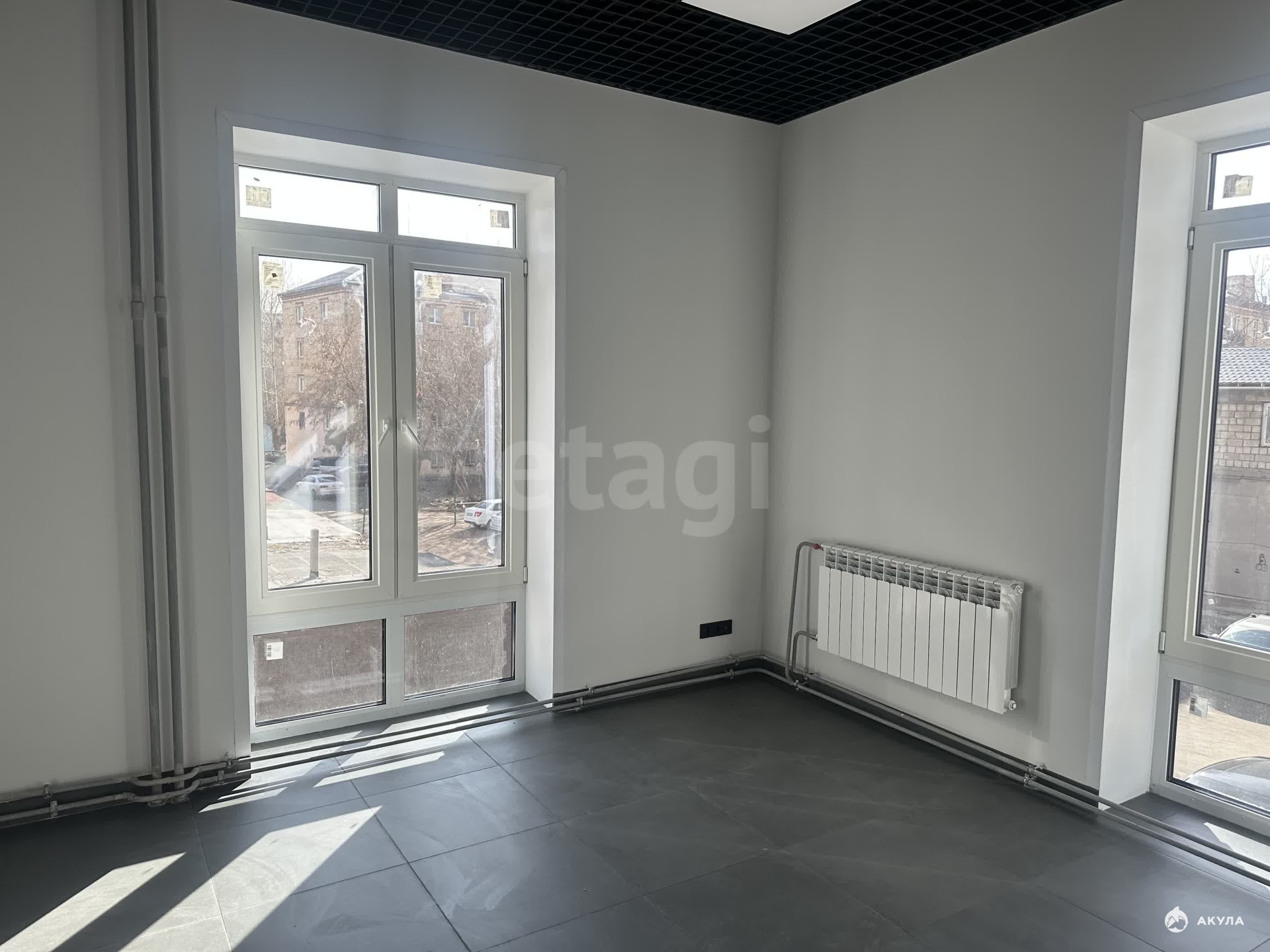 Площадь помещений — от 25 до 78 кв.м. В наличии вариант 77, 5 кв.м. Выполнен качественный ремонт: на полу — кафель, стены окрашены, установлены подвесные потолки и витражные окна.