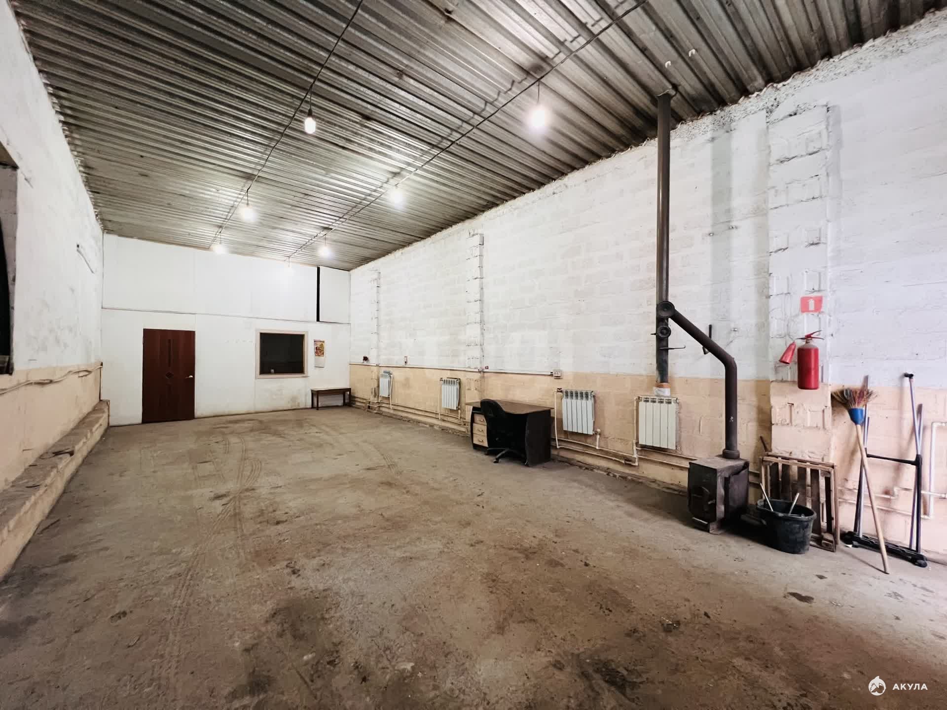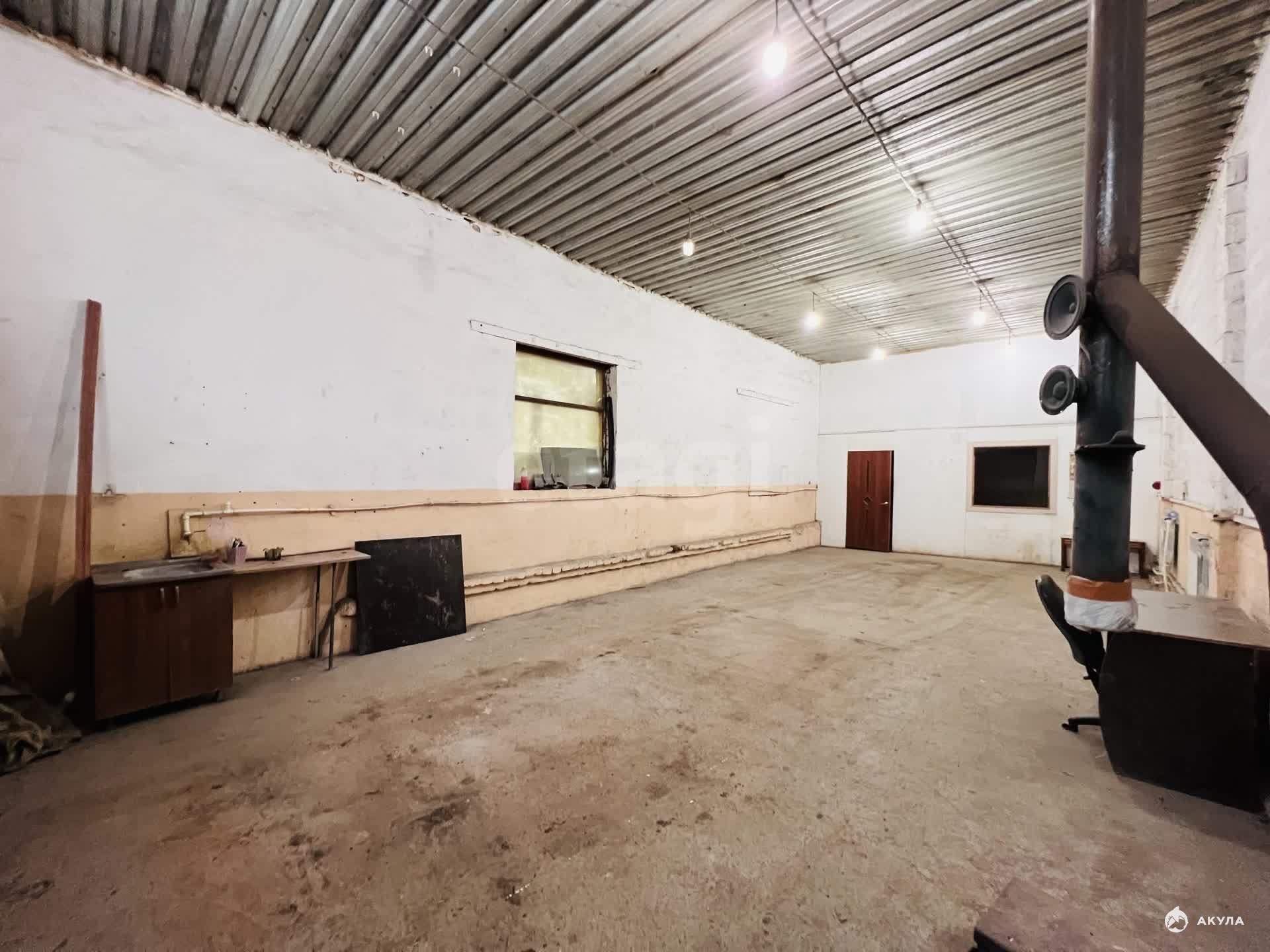 Площадь: 70, 2 м² (13, 5 м x 5, 2 м), высота потолков: 4 м. — позволяет работать с габаритным оборудованием и товаром, ворота: габаритные (2, 6 м x 2, 6 м) для беспроблемного заезда и заноса техники, оборудования, паллет; электроснабжение: Мощная линия 15-20 кВт, 380 Вольт — достаточно для большинства видов станков, компрессоров и профессионального инструмента. Коммуникации: Отопление, освещение, холодное водоснабжение. Дополнительно: Установлена печь-буржуйка для поддержания комфортной температуры в сильные морозы.