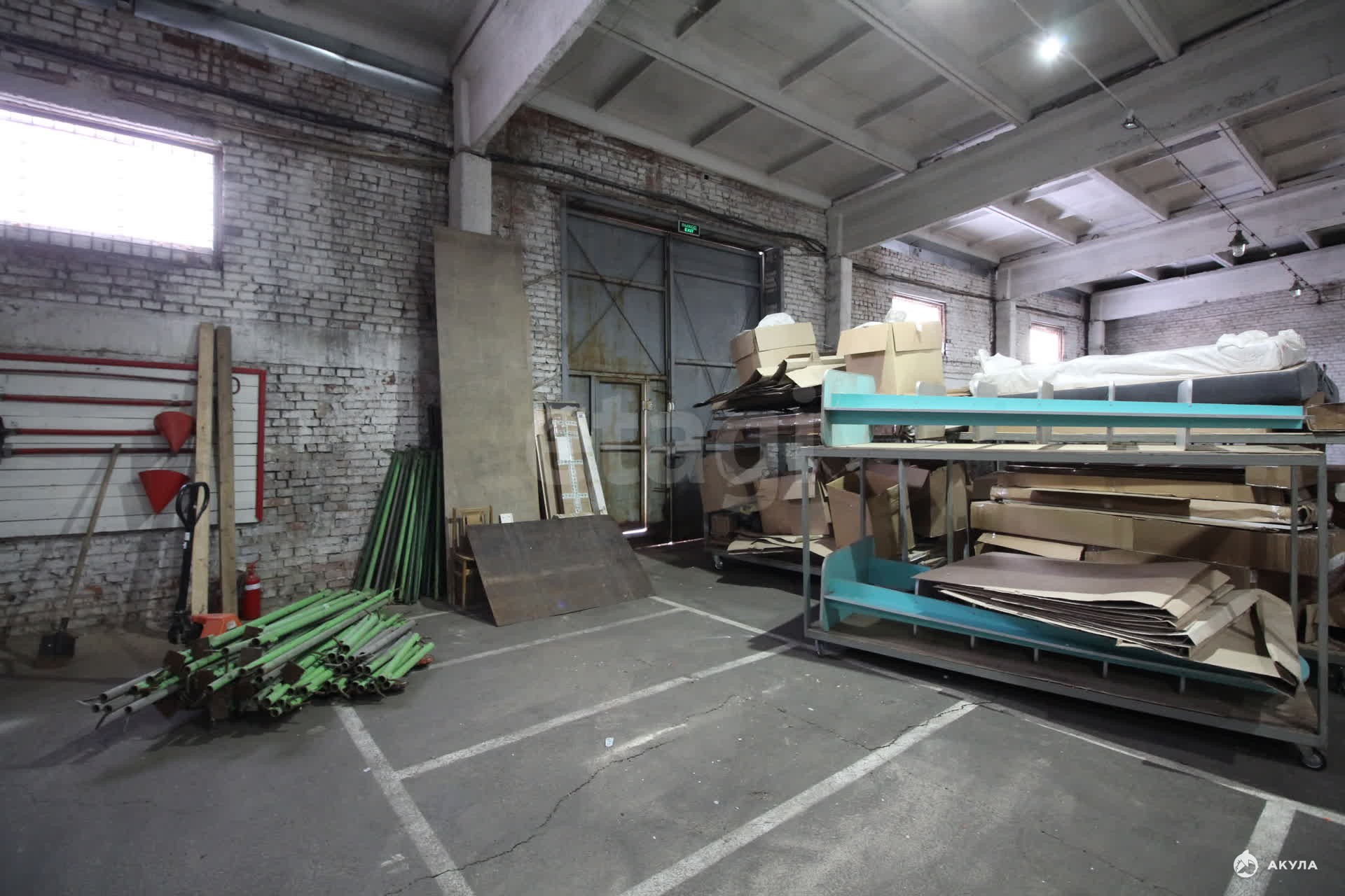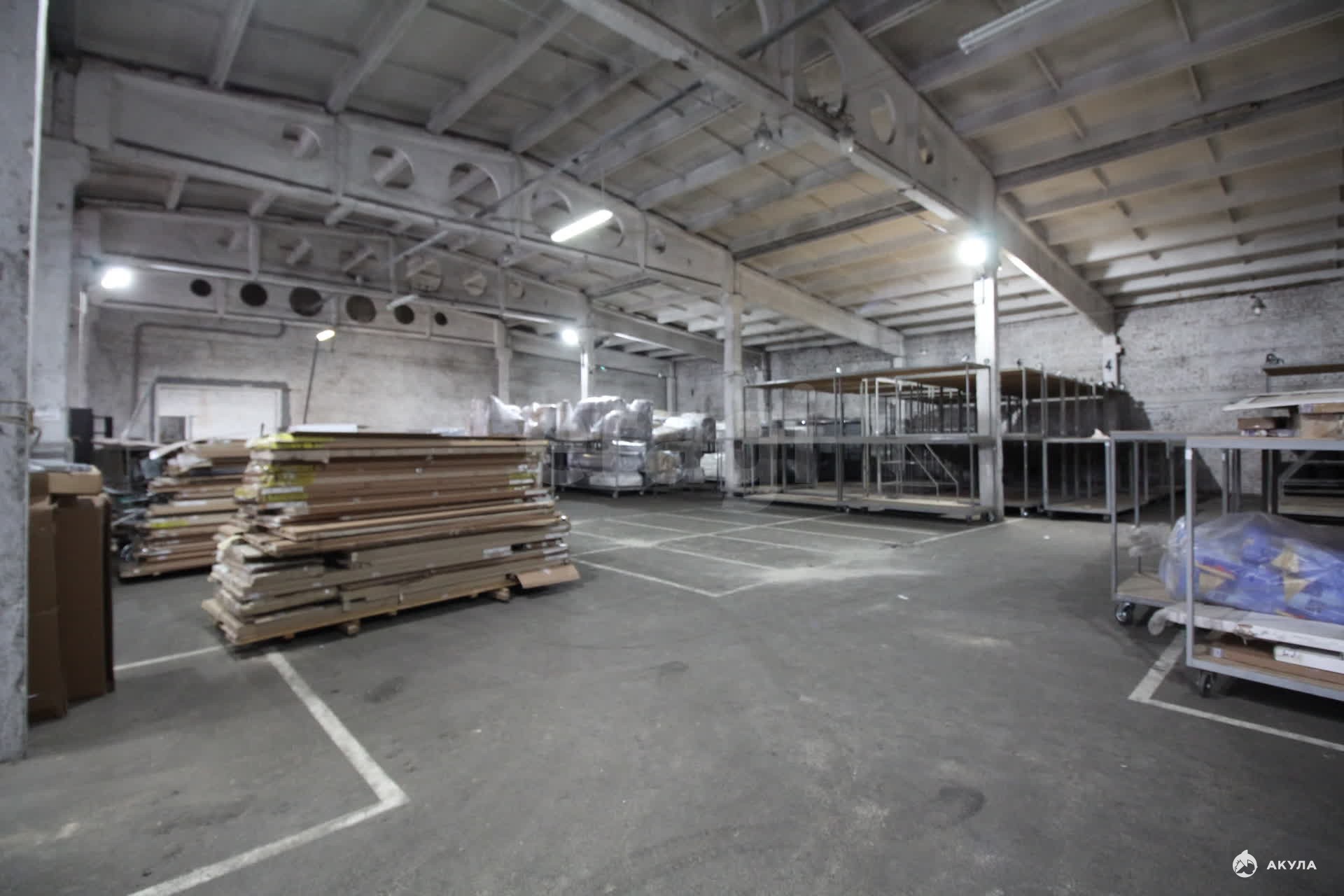 Высота потолка 6 м. Помещение подойдет под хранение товаров не требующих соблюдение температурного режима.