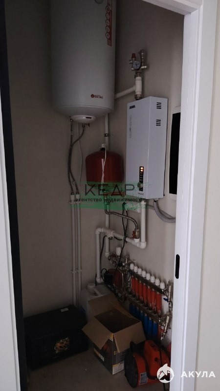 Отопление - теплые полы, электрокотел (Zоtа 6/9 кВт), пятикамерные окна, потолок натяжной со встроенными светильниками. Дом оснащен всем необходимым оборудованием и коммуникациями: эл. энергия 15 кВт, септик 6 м3, автономное водоснабжение (скважина до 40 м).