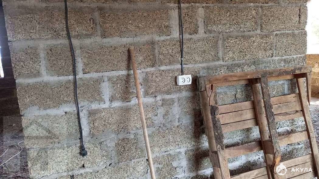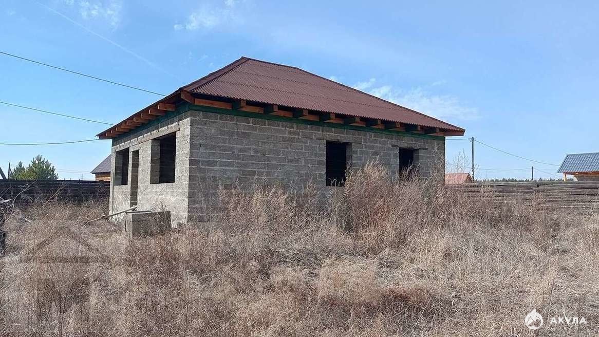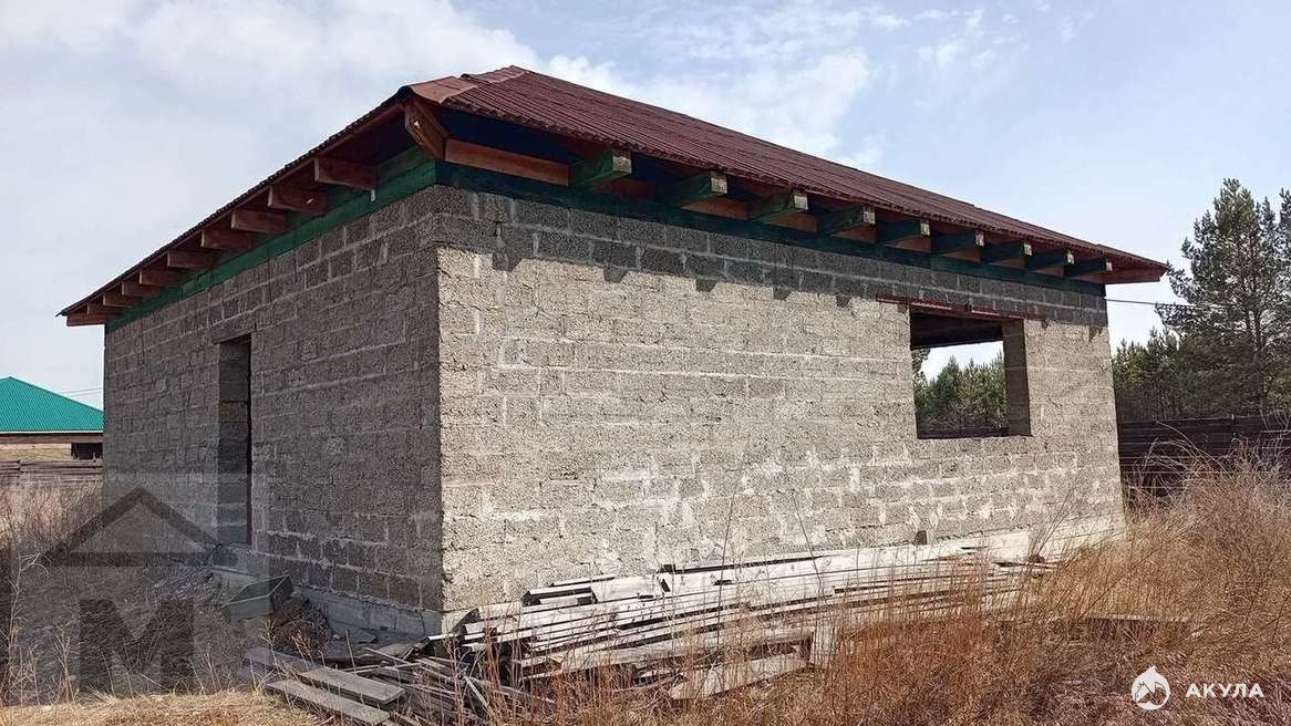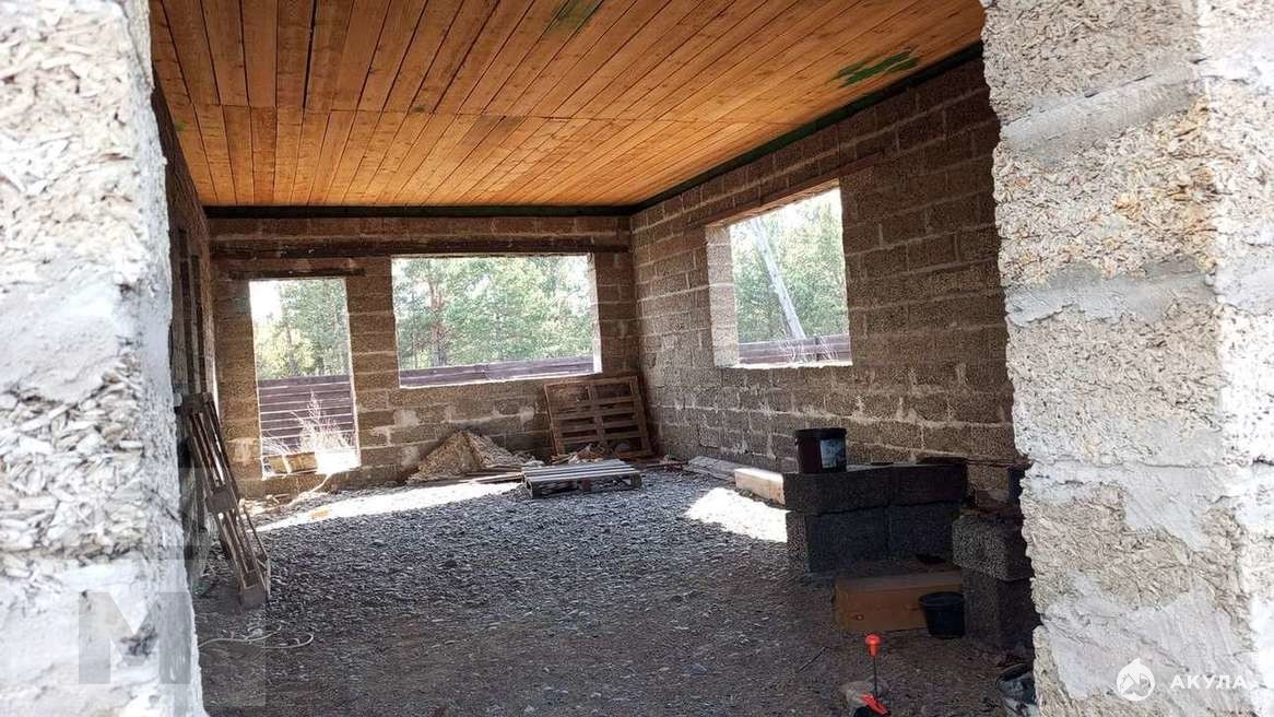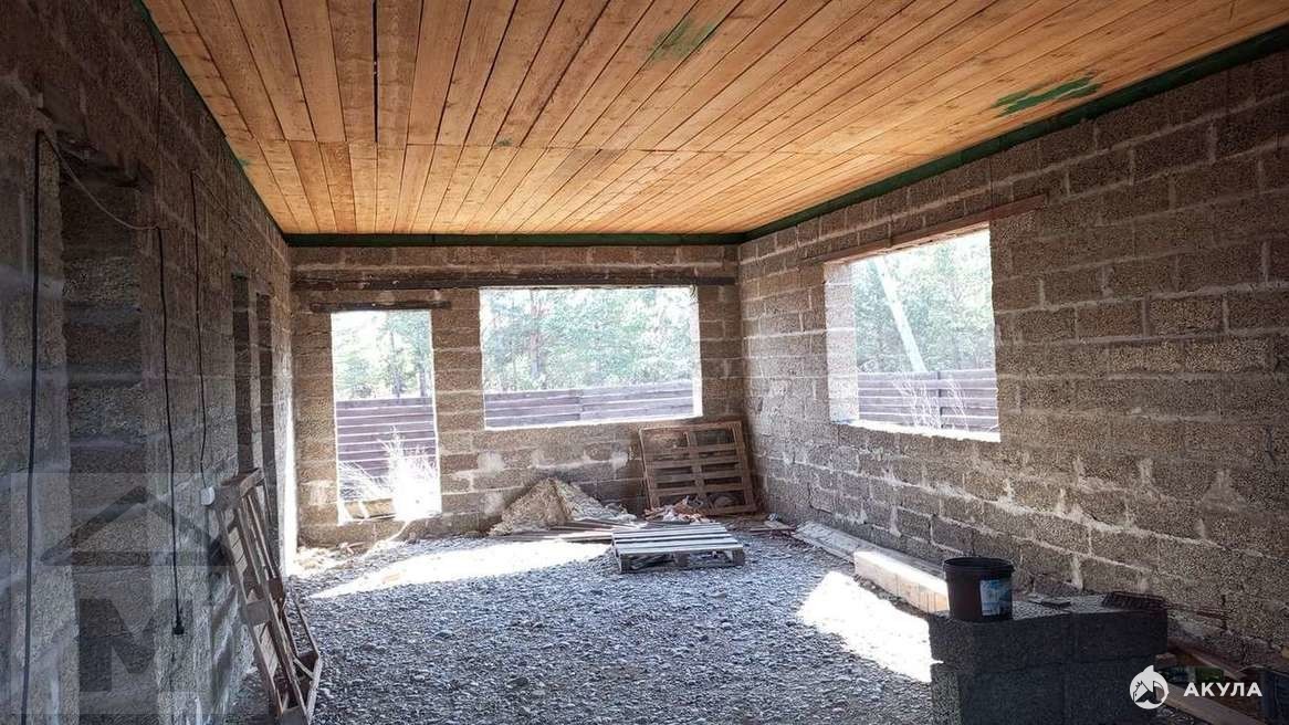 Материал дома: Кровля выполнена из Ондувилла - битумная черепица с уникальной формой волны в компактном модульном формате. Создает красивую объемную кровлю, внешне практически не отличимую от покрытия натуральной черепицы. Потолок деревянный, утеплен (опилки). Выполнена гидроизоляция. Есть электричество, вода.