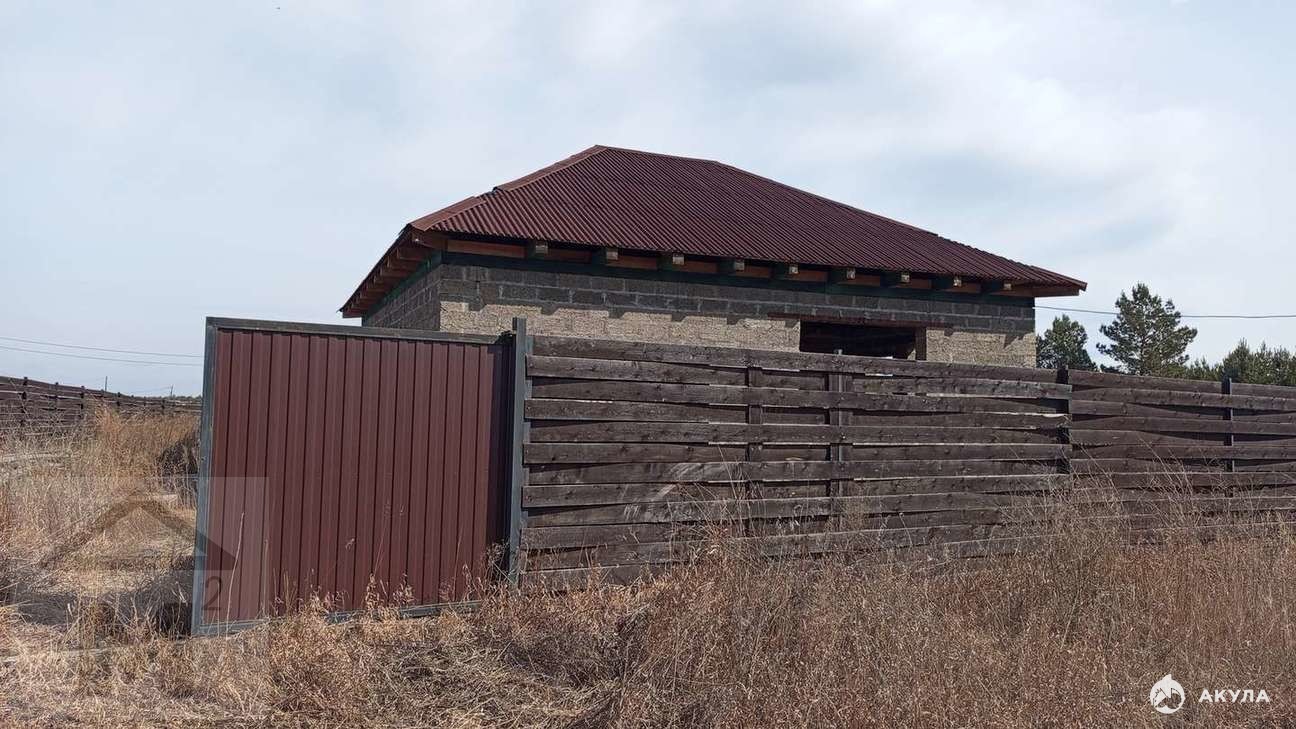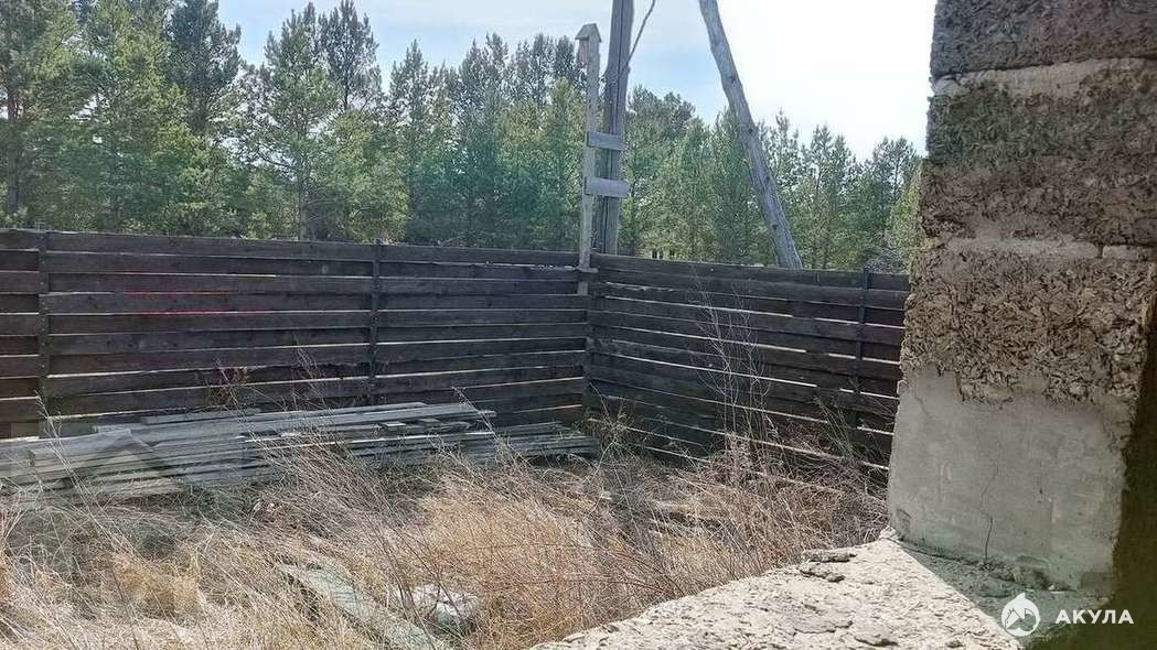 Дом огорожен хорошим забором, недострой. Есть соседи, дом угловой, сосновый бор в 5 метрах, чистый воздух. 6 минут езды на машине до Минусинска, до Абакана 15 минут.