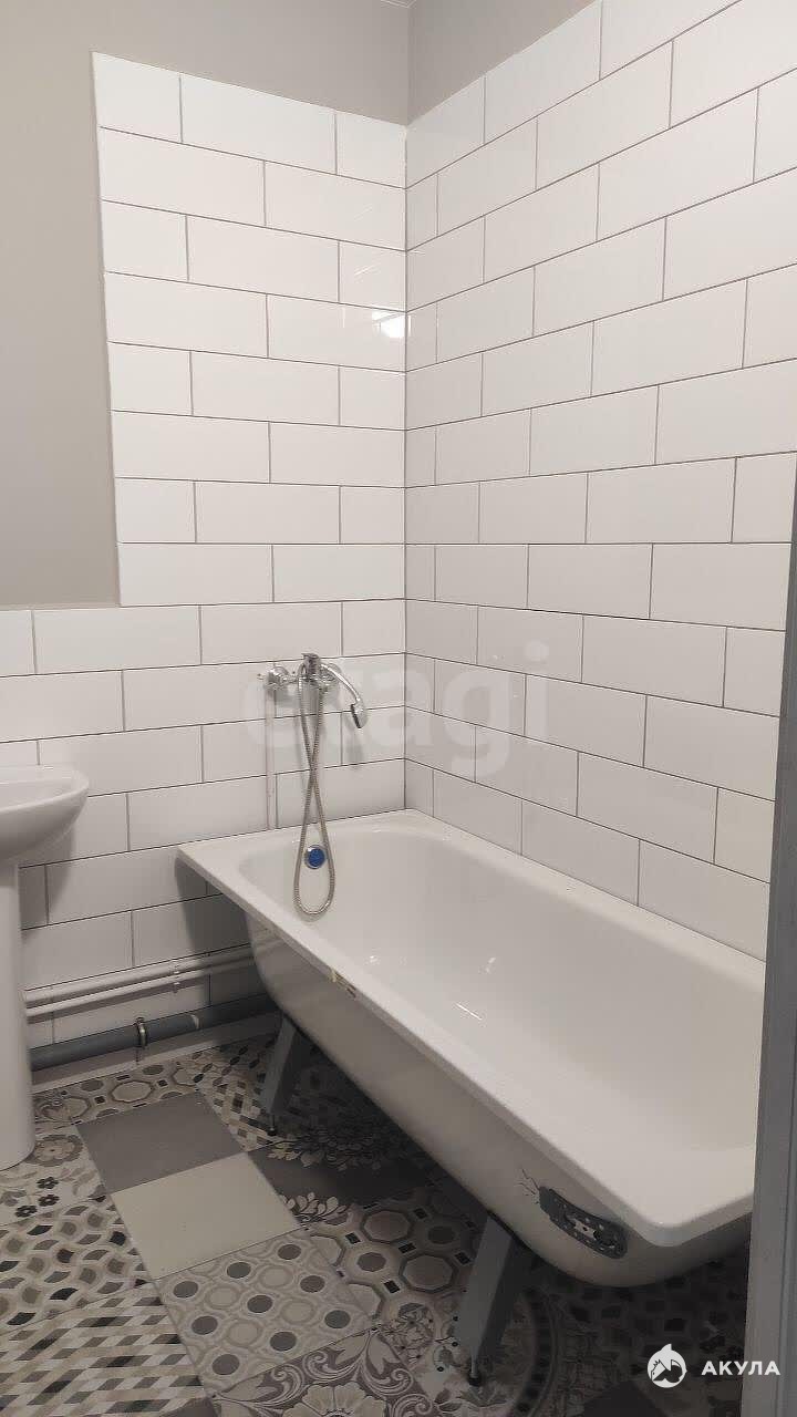 Квартира с красивой чистовой отделкой в сдержанном скандинавском стиле: светлый линолеум, обои под покраску, матовый натяжной потолок, ванная полностью в кафеле, установлена сантехника.