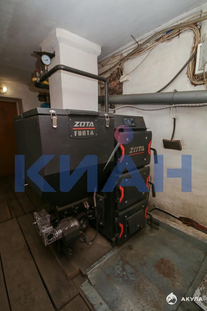 Система отопления: водяные батареи, автоматический твердотопливный котел «Зота», стабилизатор напряжения и резервный генератор.