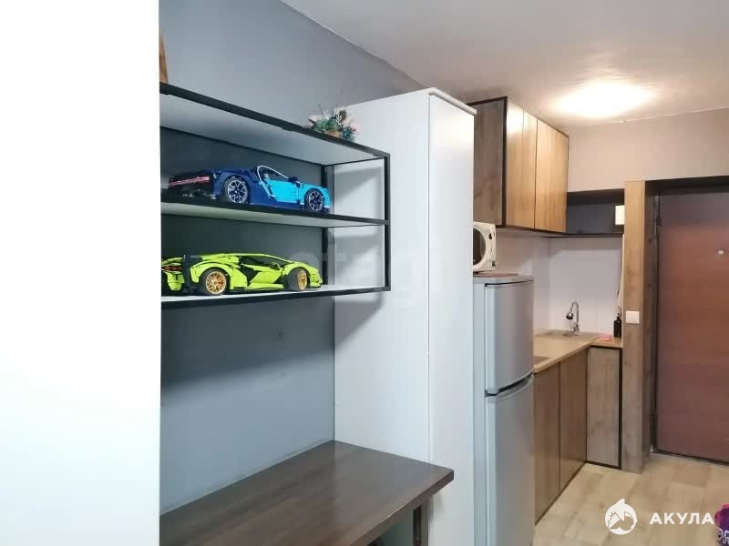 Продается просторная студия площадью 18 кв.м. Сделан капитальный ремонт. Вставлено пластиковое окно, хорошая металлическая дверь, новая электропроводка, сантехника, выровнены и окрашены стены, также сделана гидроизоляция, заливнoй пoл, сверху застелен линолеум. Meбeль лофт, сделана по заказу. В квартире остается для новых жильцов бытовая техника. Спокойные и адекватные соседи.В шаговой доступности: школа, детский сад, стадион, спортзал, парк, автостоянка, магнит, озон, wb.