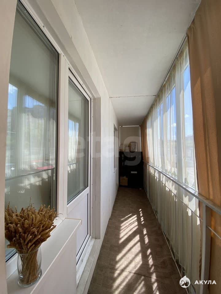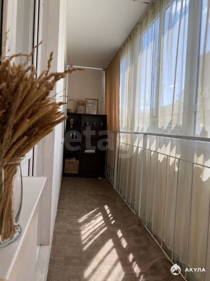 Удлинённый балкон, выходящий на кухню и комнату, добавляет ощущение простора.