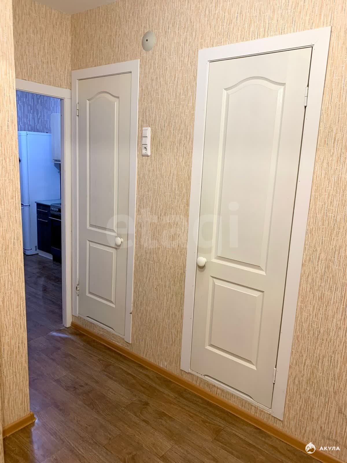 В квартире выполнен ремонт от застройщика. В прихожей установлен встроенный шкаф, что обеспечивает удобство и дополнительное место для хранения.