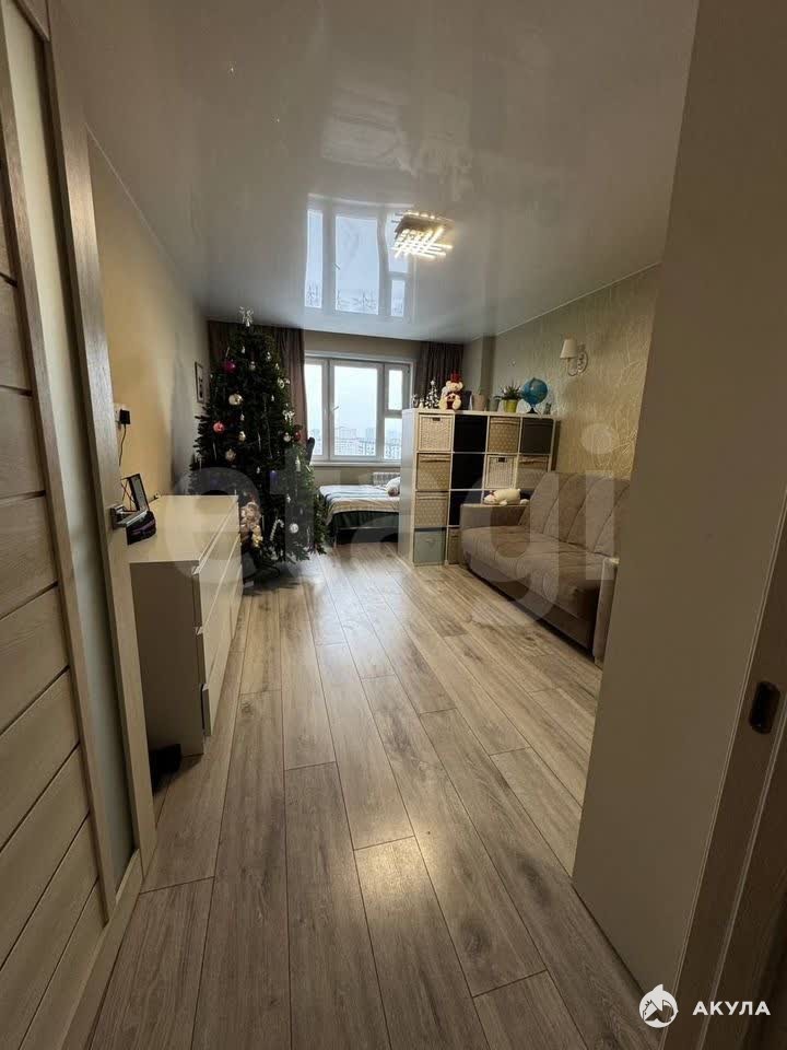 Квартира расположена на 11 этаже, что обеспечивает прекрасный вид из окон на двор школы. Площадь комнаты не маленькая -19.9 квадратных метров. Кухня 12.7 квадратных метров достаточно просторная. Также есть балкон. Квартира после хорошего ремонта.