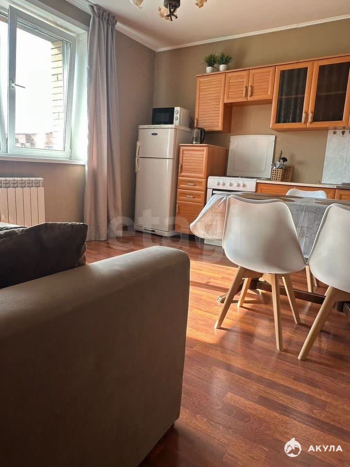 Однокомнатная видовая и просторная квартира площадью 47 м² расположена на 9 этаже 10-этажного дома по ул. Водопьянова (м/р-н Северный). Пространство организовано рационально: жилая зона (16 м²) отделена от кухни-гостиной (14, 5 м²), что создает ощущение уюта и функциональности. Большая лоджия (4, 5 м²) с панорамным остеклением предлагает вид на город и горы, особенно эффектный в вечернее время благодаря архитектурной подсветке. Высота потолков 2, 6 м усиливает ощущение простора. Квартира имеет два окна — одно выходит на солнечную сторону, другое во двор, обеспечивая оптимальную инсоляцию в течение дня.