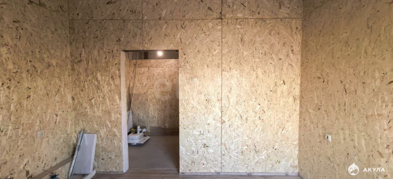 Стены из ДСП - уже не голый бетон, отличная основа для любого дизайна. Возможность сделать второй уровень над санузлом.