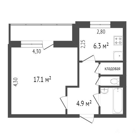 Площадь квартиры: 34, 6 кв.м