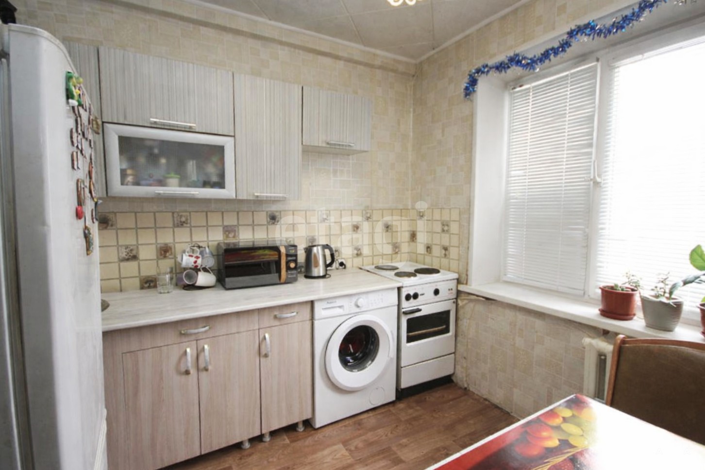 - на кухне удобно размещается гарнитур, обеденная зона и холодильник;
