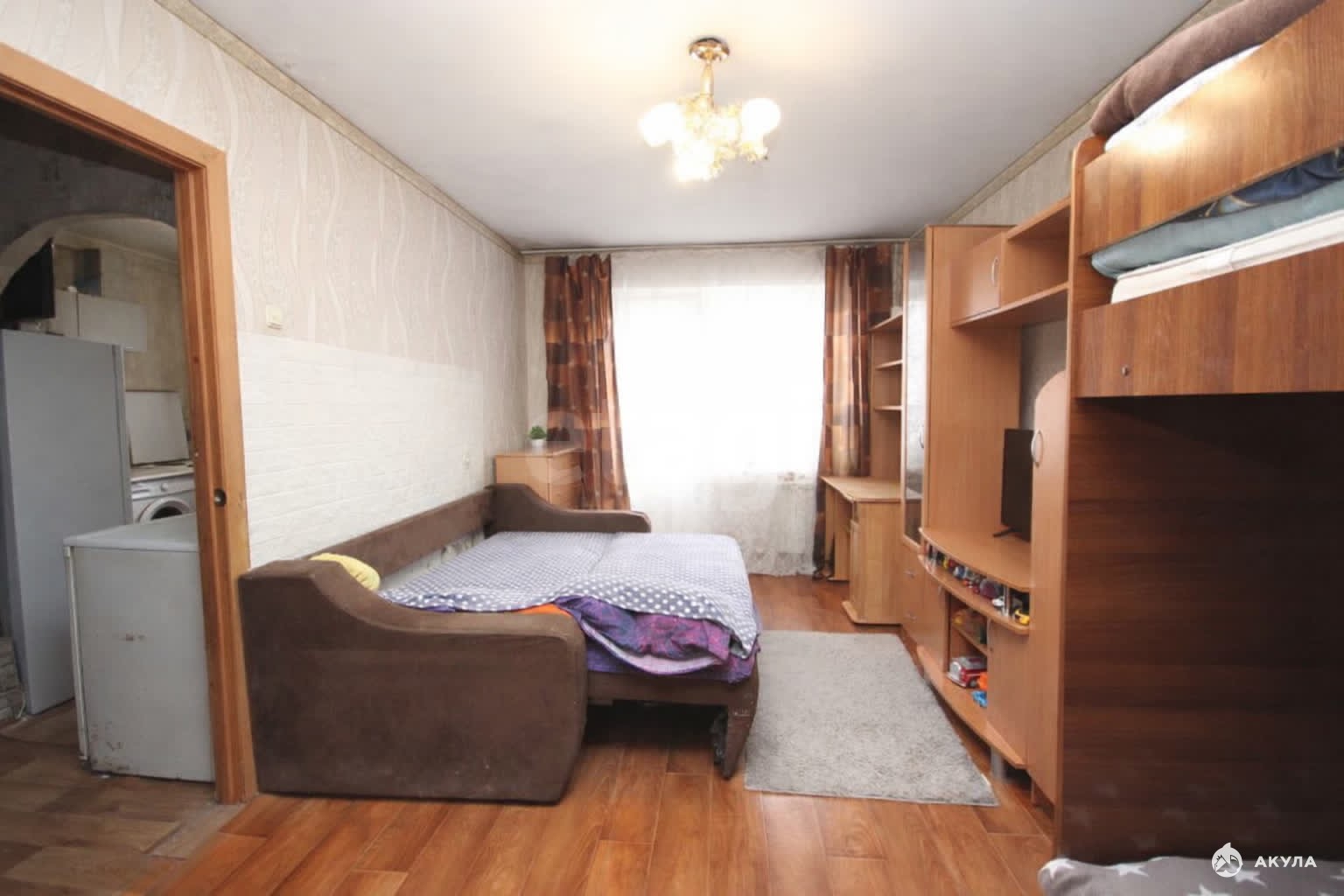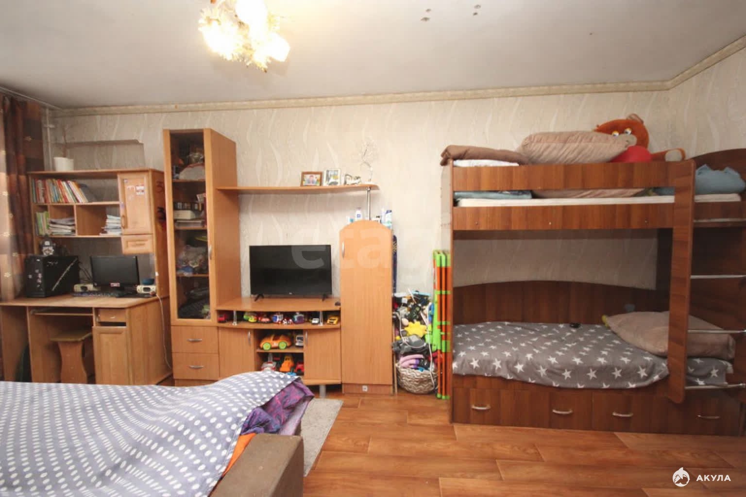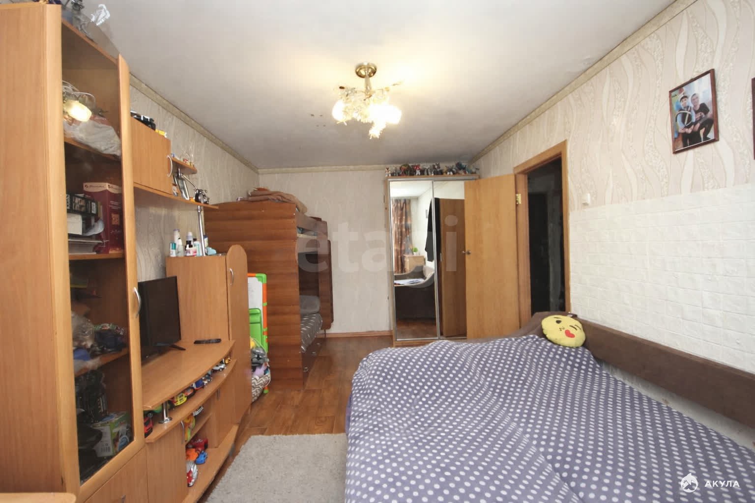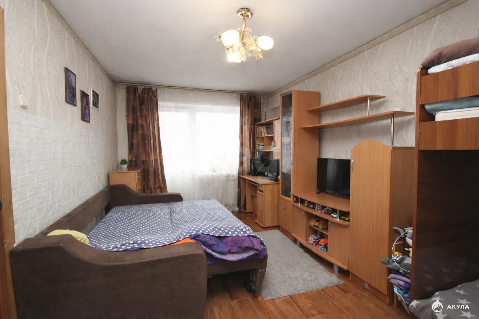 - квартира с удобной планировкой, комната позволяет сделать зонирование и отделить спальную зону;