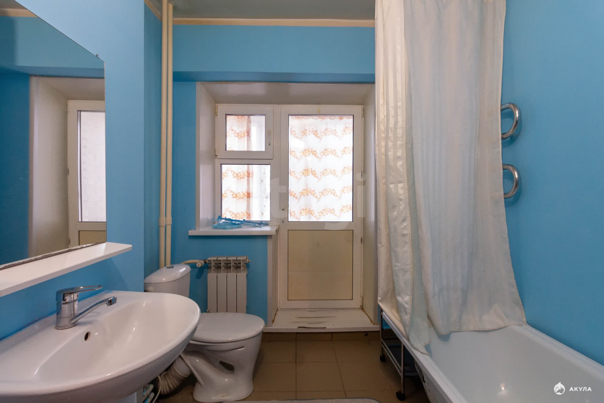 Удобная планировка , большая кухня., два балкона, просторный балкон со стороны зала с видом на озеро-парк, сан.узел совмещен., с ванной выход на балкон , в котором можно оборудовать спортивный инвентарь и заниматься спортом., окна выходят на двор.
