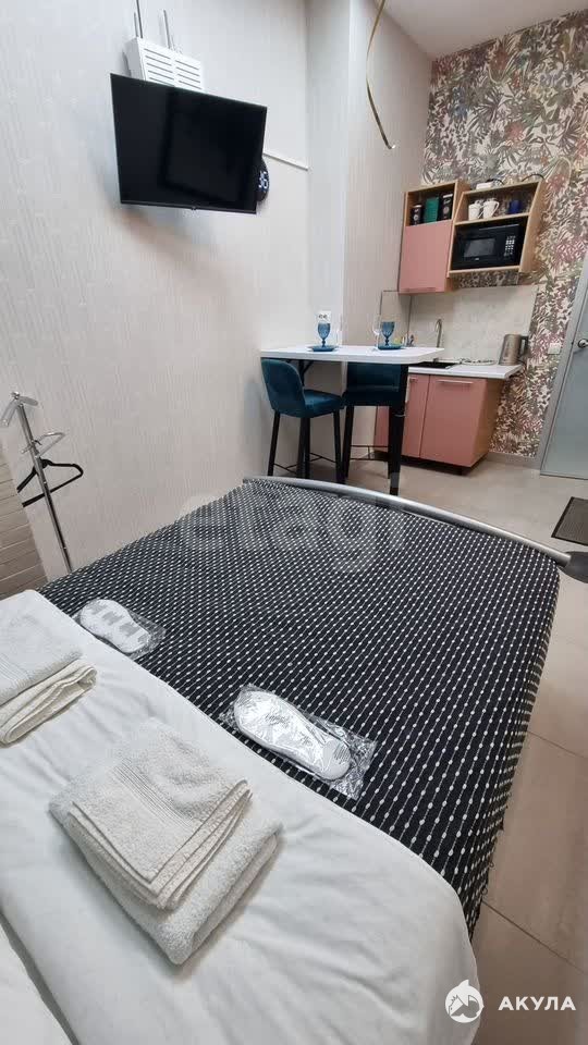 Студия площадью 15 кв. м расположена на 9-м этаже апарт-комплекса «Парк-Сити» в Красноярске. Объект полностью готов к проживанию: выполнен качественный ремонт с использованием современных материалов, установлена новая функциональная мебель и бытовая техника, включая холодильник, чайник , микроволновую печь и кухонные принадлежности.