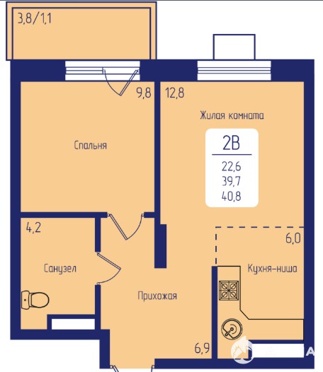 - 22.6 м²
