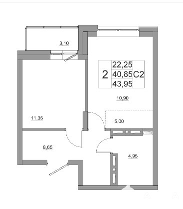 - 22.25 м²