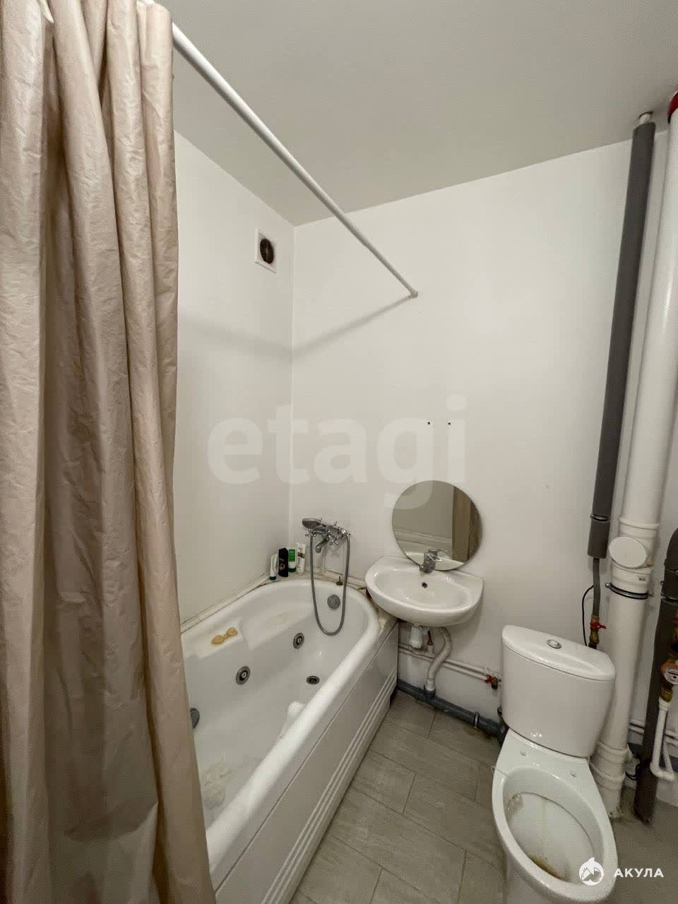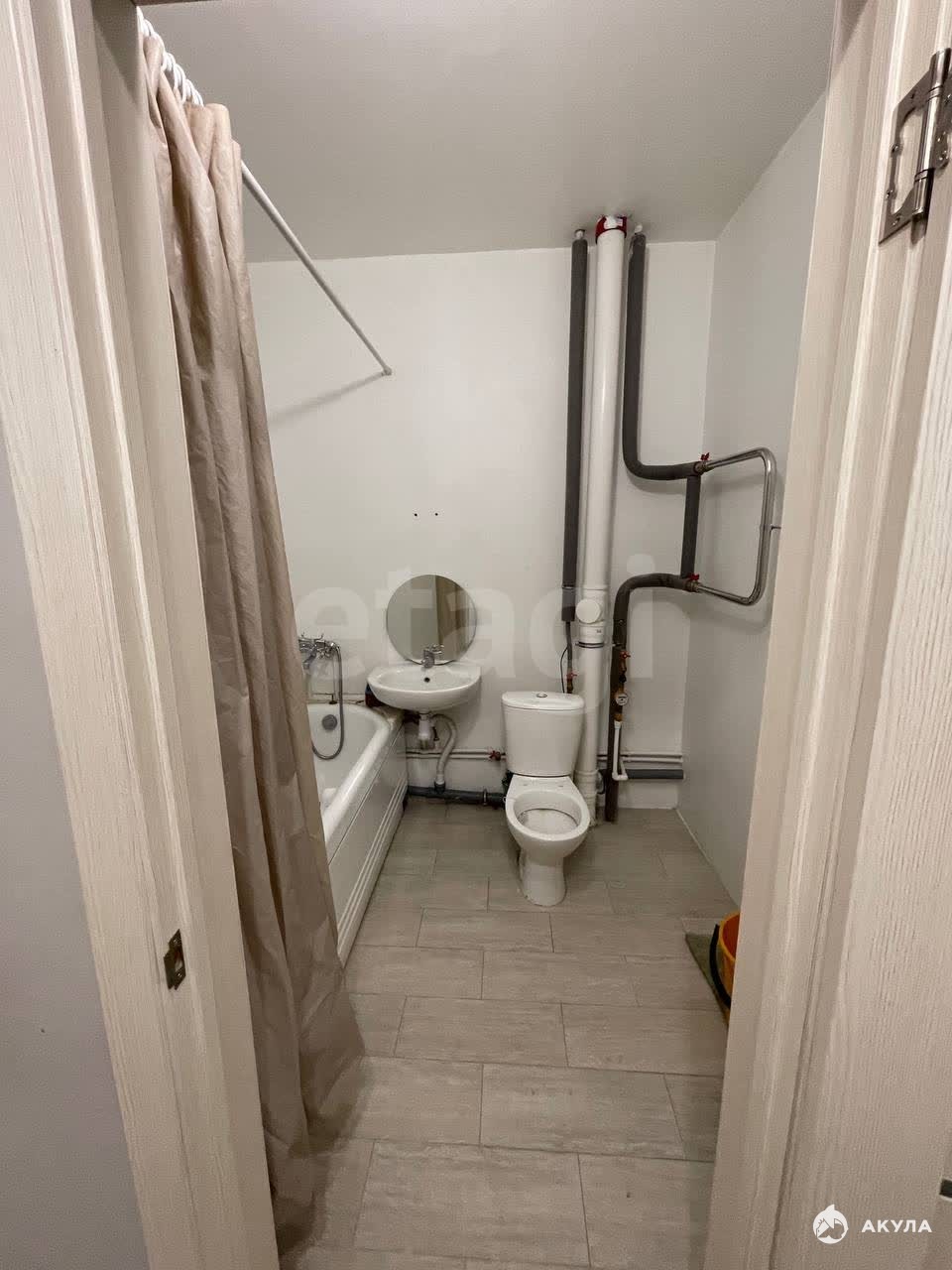 ・Санузел совмещённый, облицован кафелем.