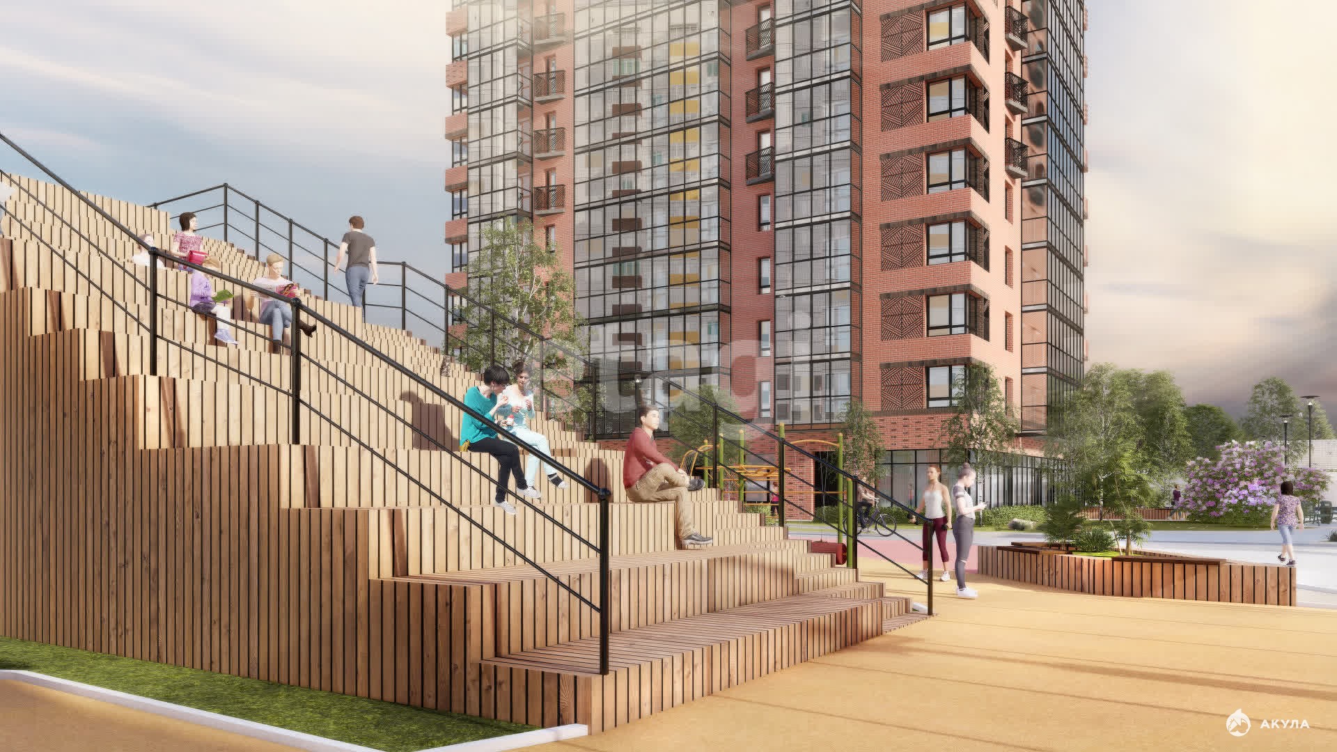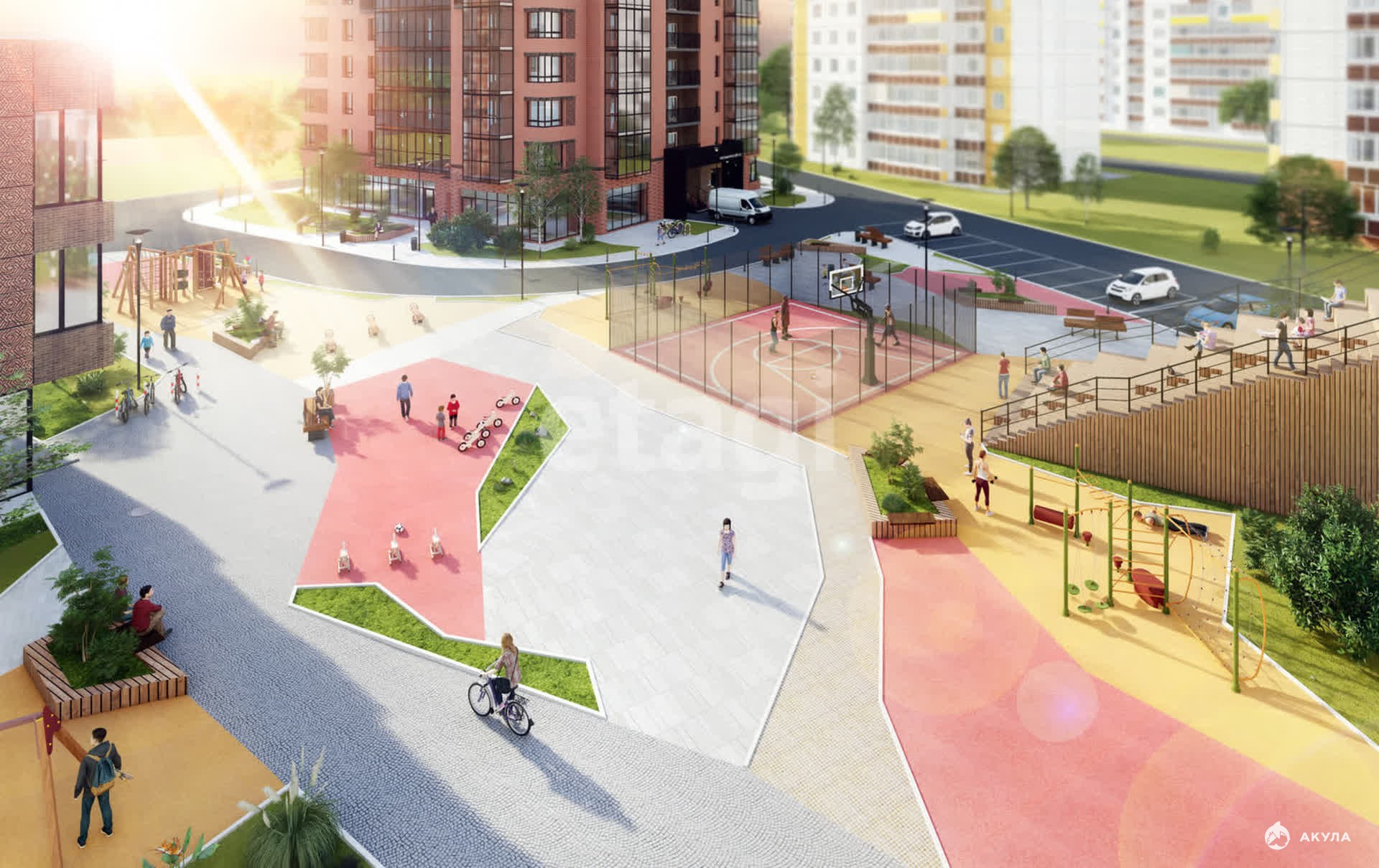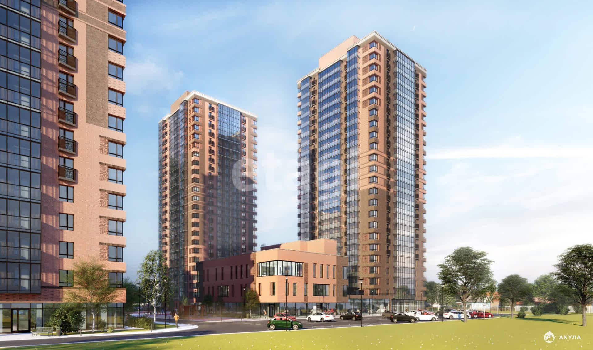 Развитая инфраструктура — паркинг (наземный и подземный), закрытый двор с детской площадкой