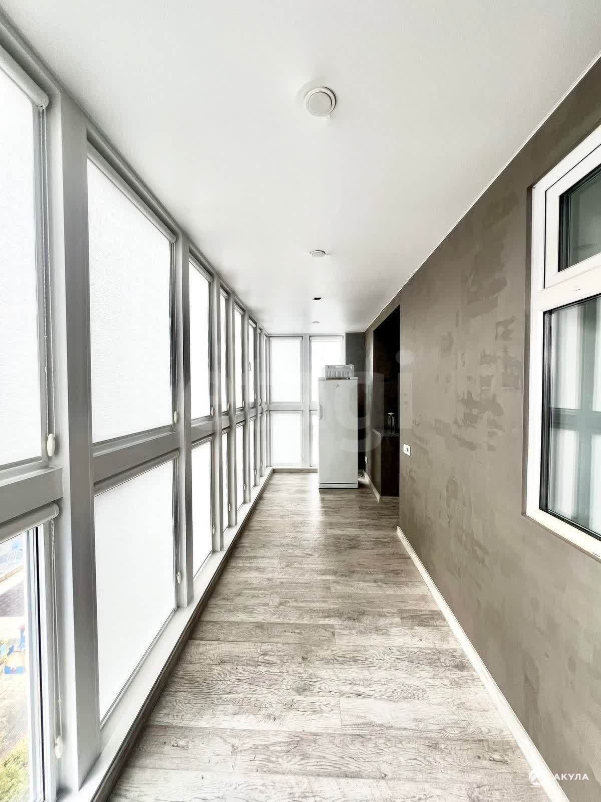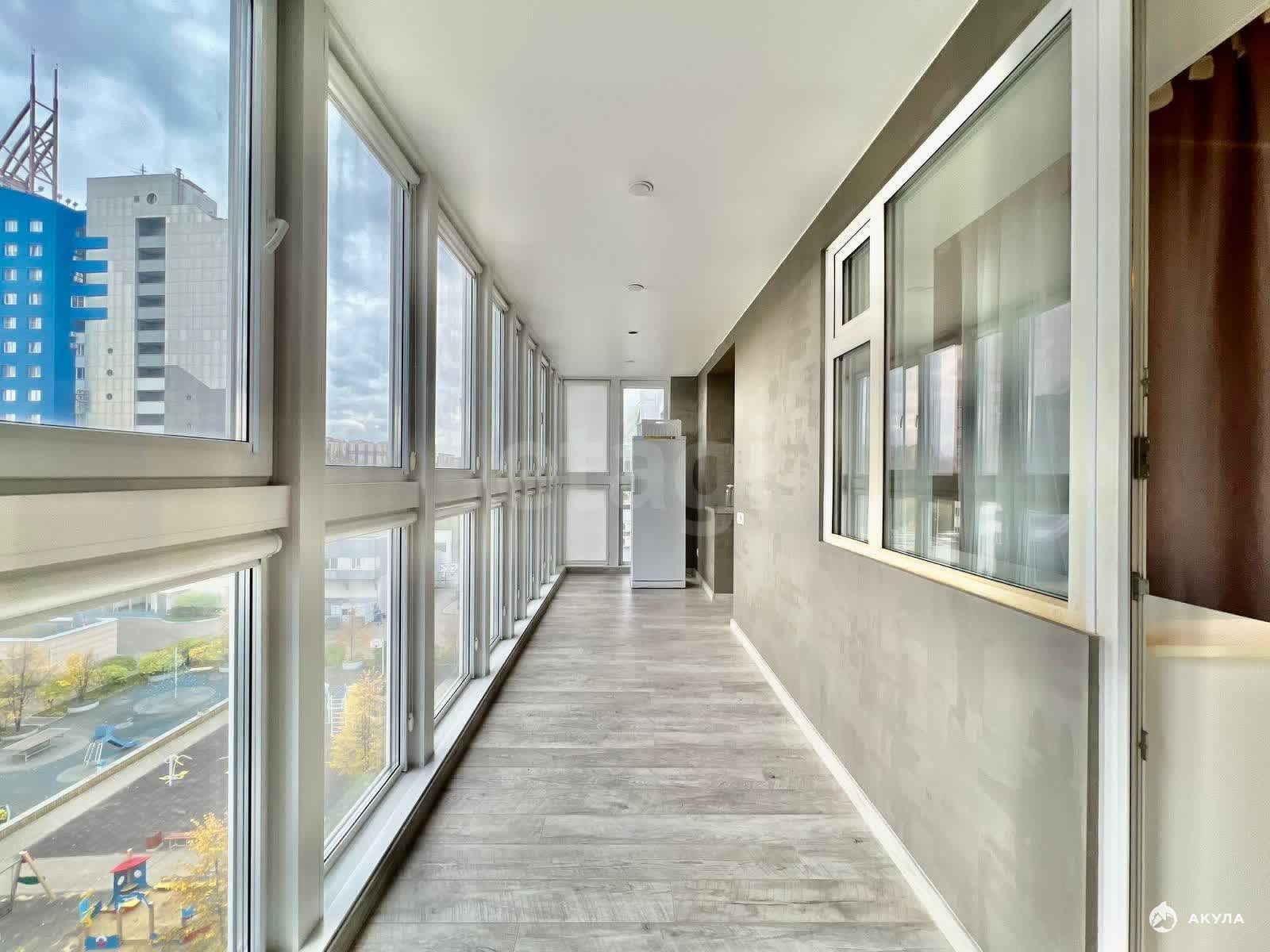 Одним из преимуществ является утепленный балкон с системой теплого пола, доступный как из гостиной, так и из спальни, что значительно увеличивает полезное пространство. Французские окна с панорамным видом во двор, жалюзи с регулируемой инсоляцией.