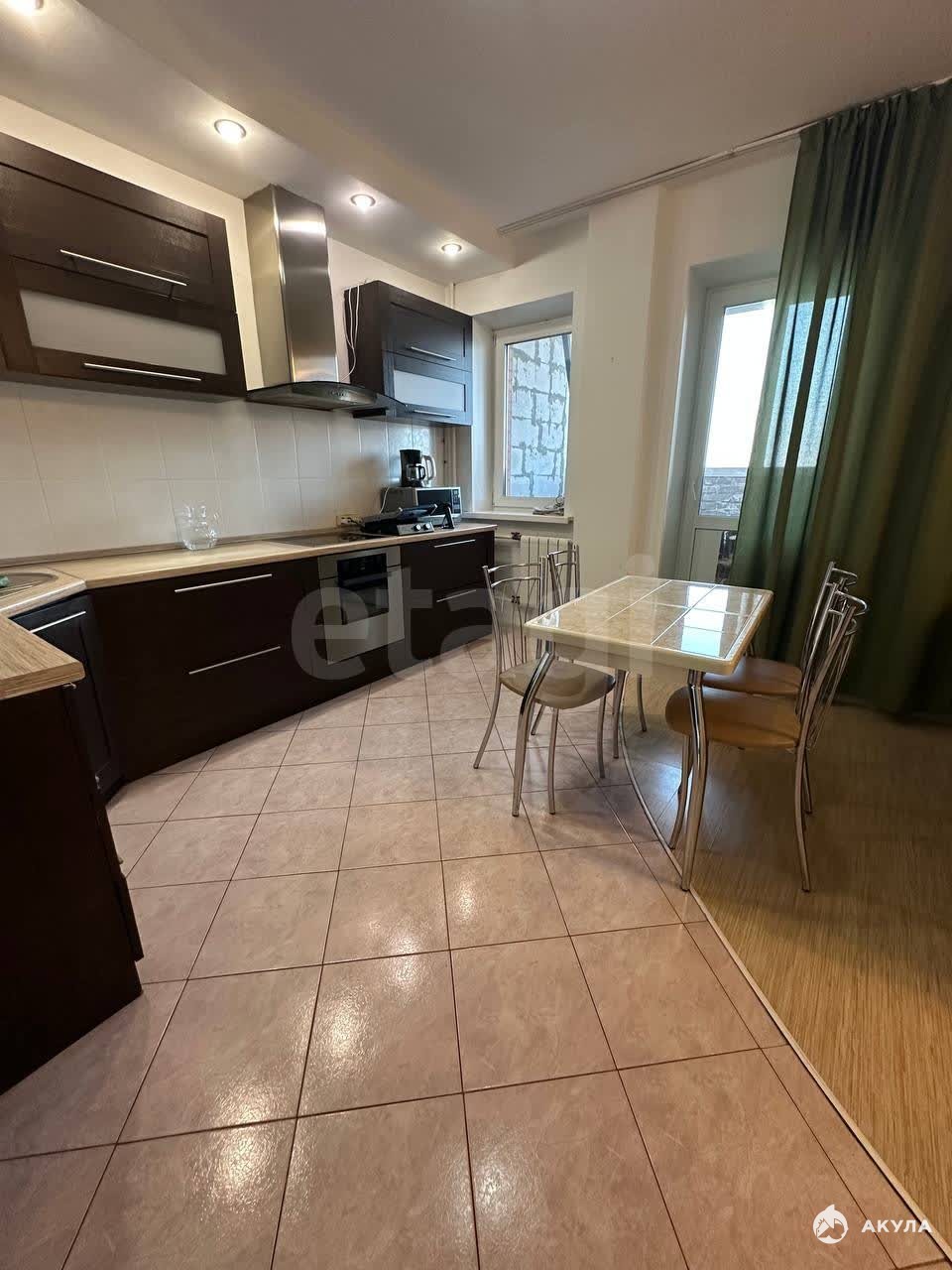 При продаже остается кухонный гарнитур со встроенной бытовой техникой, практически вся мебель.
