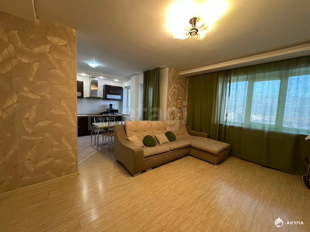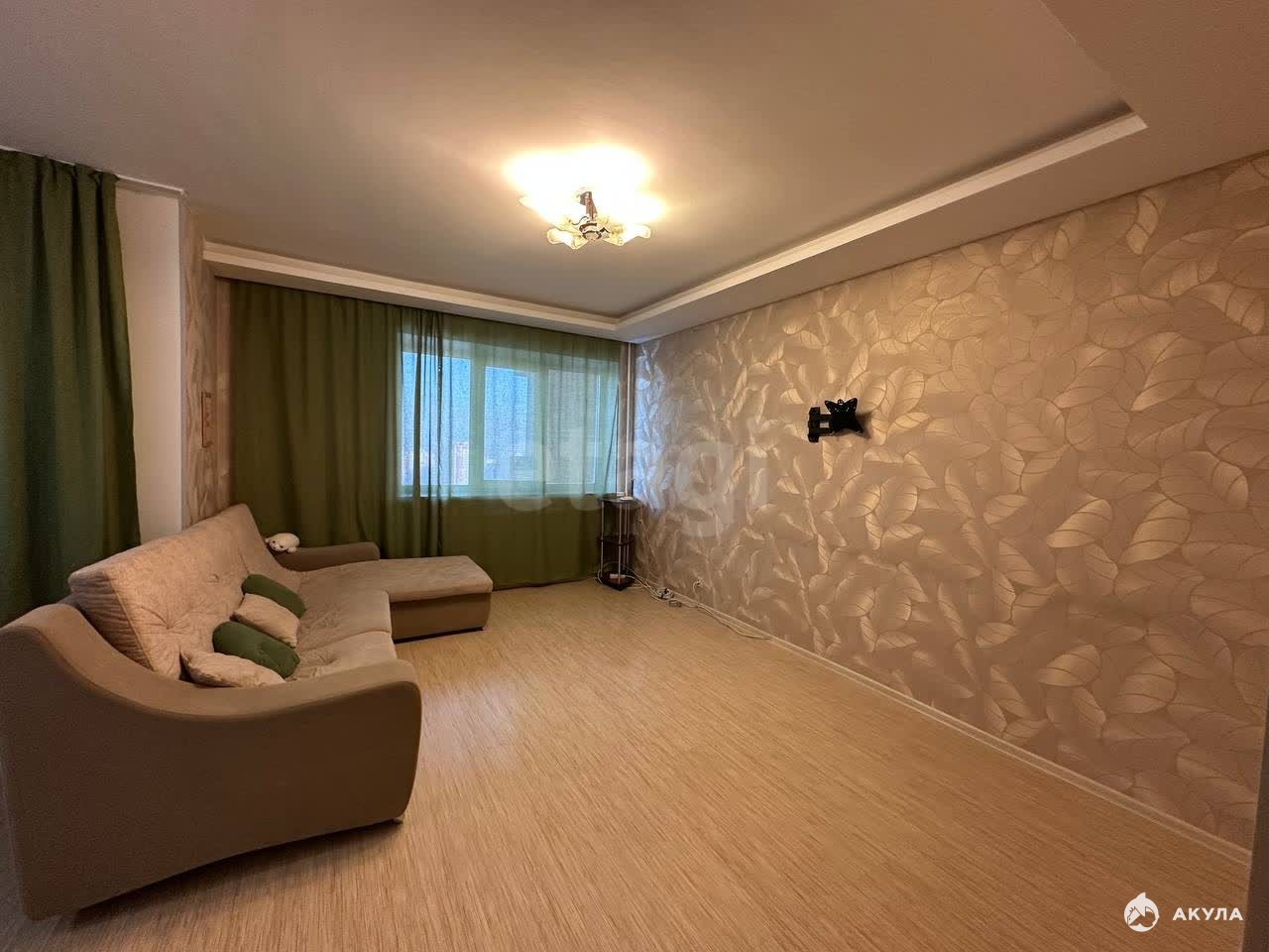 В квартире ремонт производился с использованием качественных материалов: напольная плитка в коридоре, кухонной зоне, сан.узлах, двухуровневые потолки с точечными светильниками, в зонах отдыха ламинат, стены выровнены.