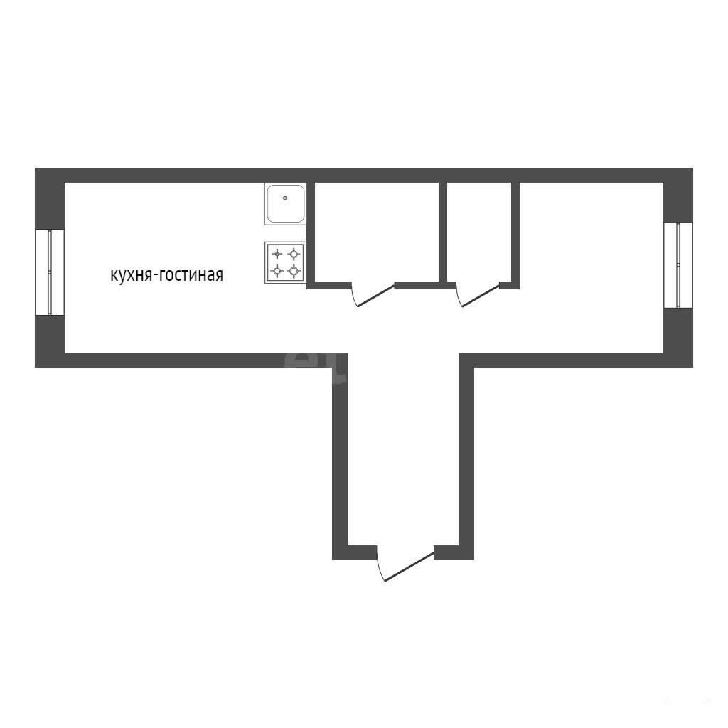 Объект находится на первом этаже с окнами на две стороны.