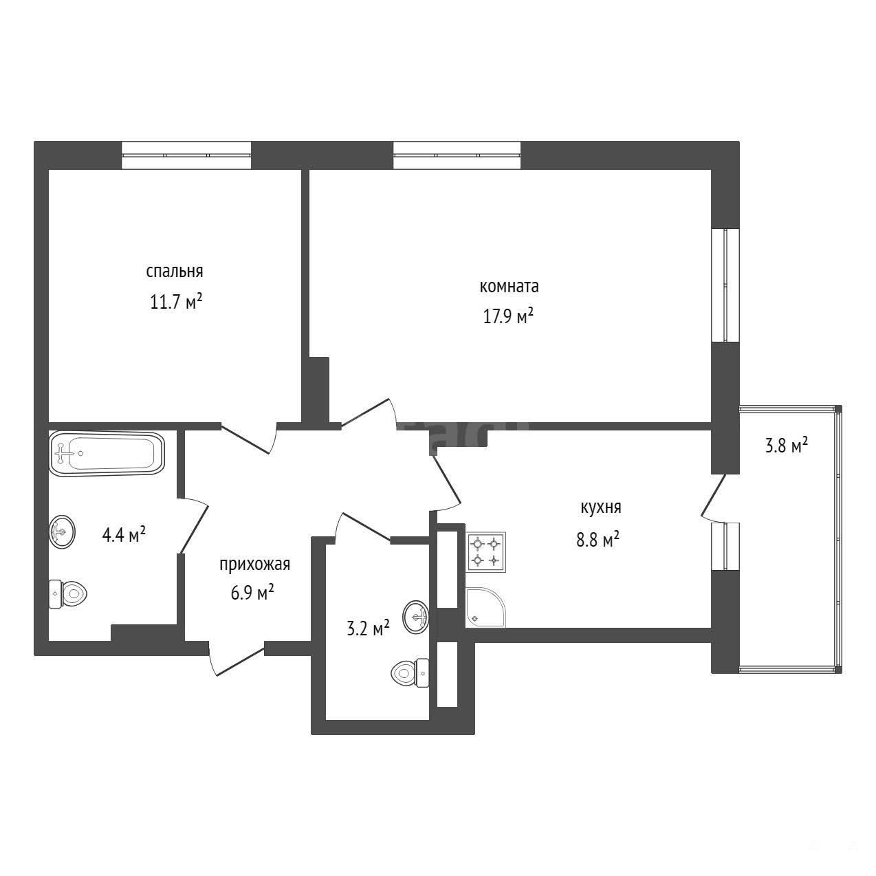 * Просторную кухню с выходом на застеклённый балкон