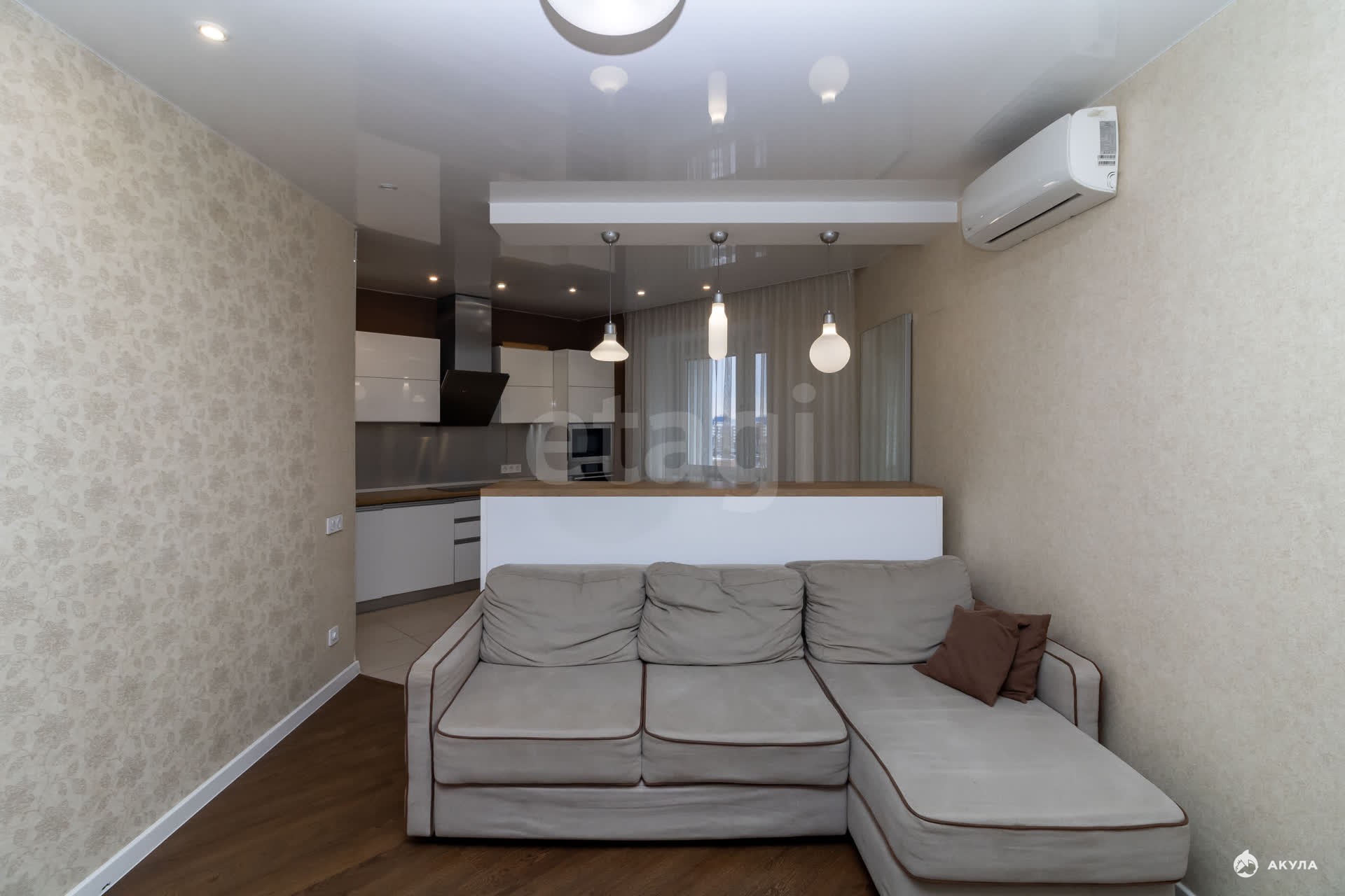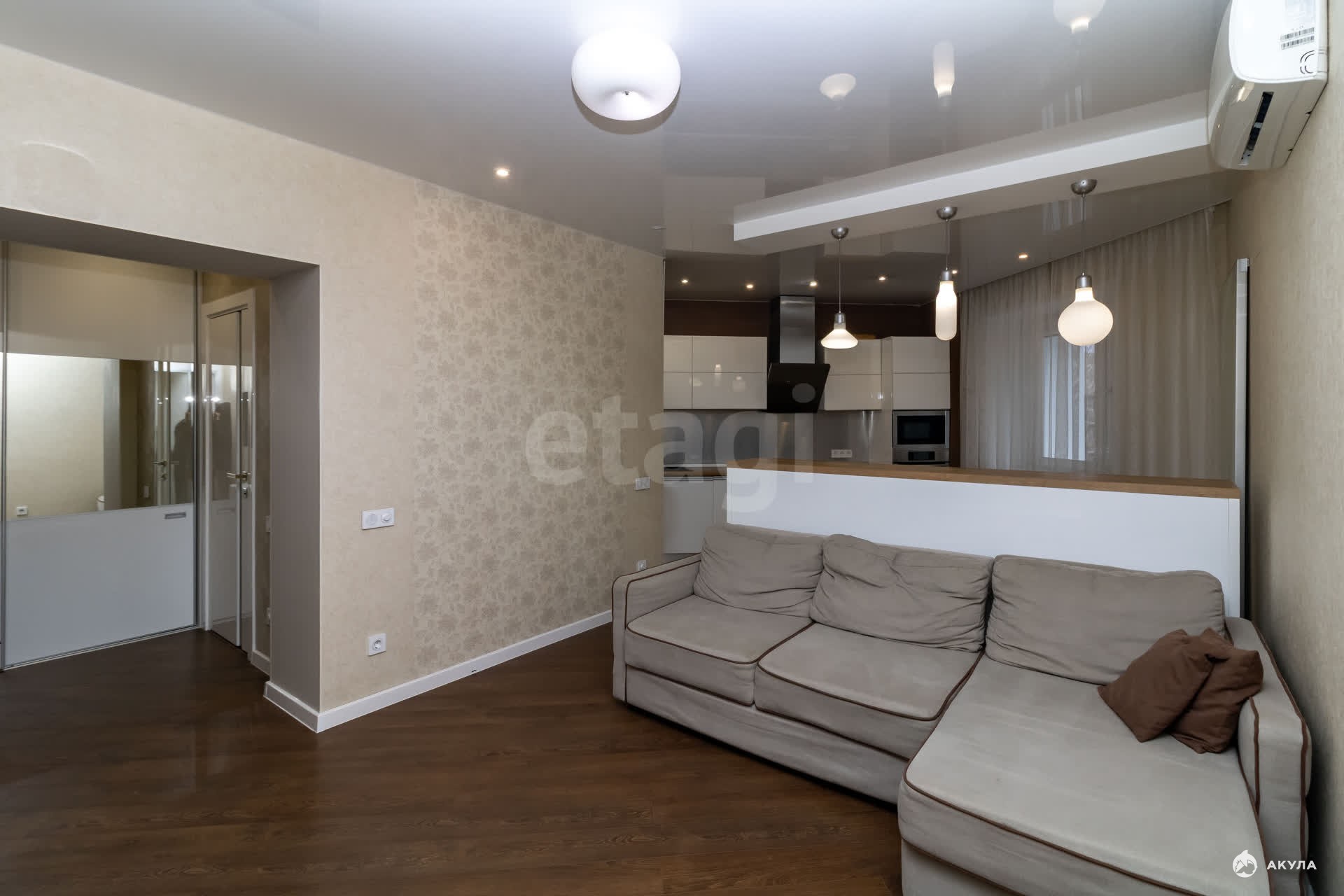 Продается просторная двухкомнатная квартира площадью 47 м² на 9 этаже монолитно-кирпичного дома 2012 года постройки. Квартира с качественным современным ремонтом, готова к заселению, при продаже остается вся мебель и техника. Планировка функциональна: предусмотрена большая прихожая с гардеробной зоной и отдельная кладовая для хранения. Санузел совмещенный, полностью отделан кафелем. Дом оснащен двумя современными лифтами, территория круглосуточно находится под видеонаблюдением. Для жильцов доступна подземная парковка, а во дворе обустроены детская и спортивная площадки, есть гостевые парковочные места.