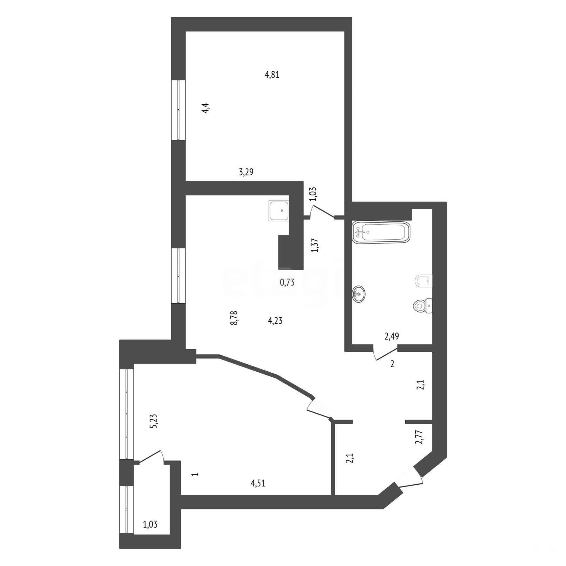 Площадью 81 кв. м с дизайнерским ремонтом, выполненным с использованием качественных материалов и брендовой техники. Высота потолков 2, 8 метра и панорамные окна, выходящие на улицу, создают ощущение простора и наполняют пространство естественным светом. Планировка включает совмещенный санузел и просторную лоджию. Объект полностью меблирован и готов к заселению — вопрос передачи отдельных предметов обстановки может быть согласован отдельно.