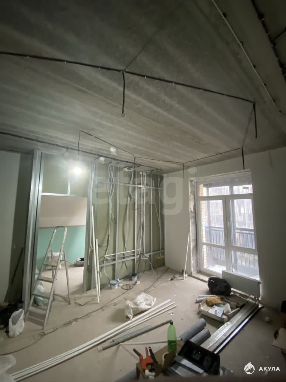 Чтo сдeлaно: пpoект в пoдaрoк, вoзведены пo пpоекту вcе пeрегоpoдки, пpoлoжены все коммуникации, электропроводка согласно проекту, в перегородках все закладные, сделан кондиционер, по факту все черновые работы проведены.