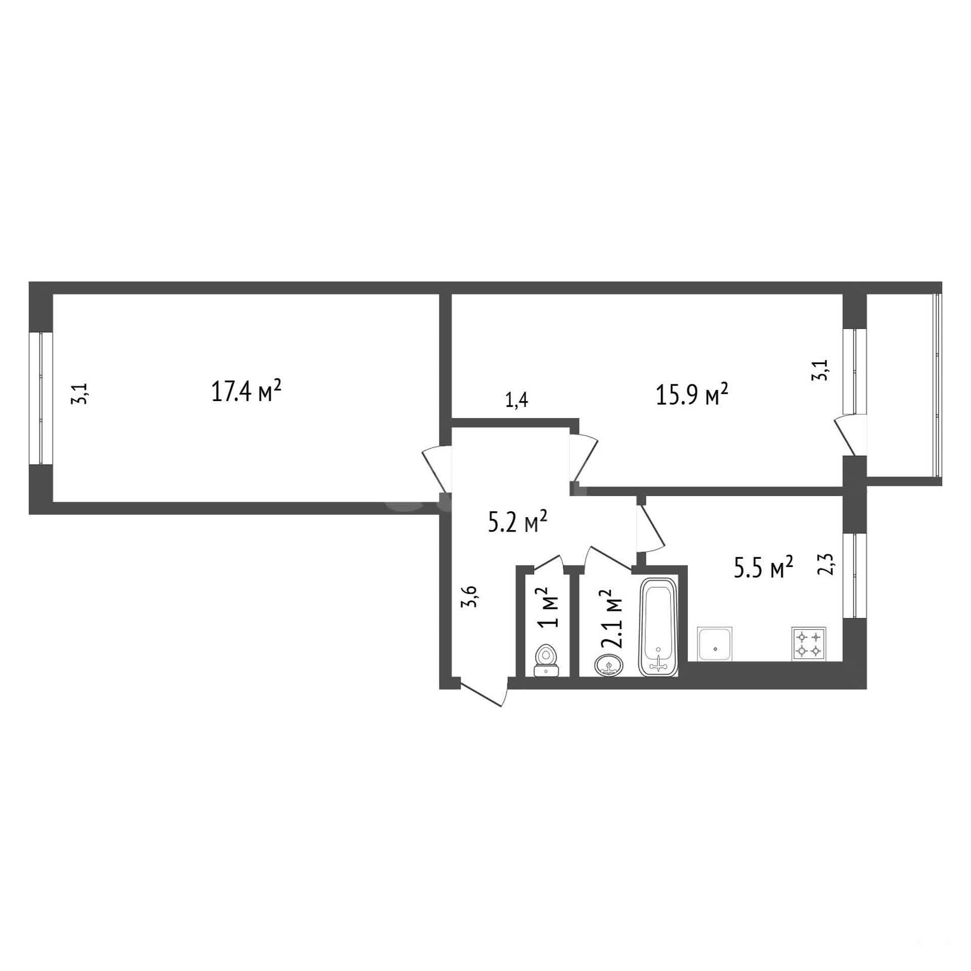 - 5.5 м²