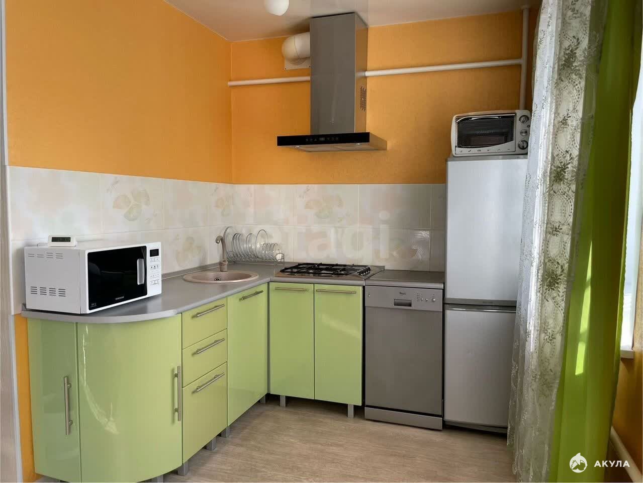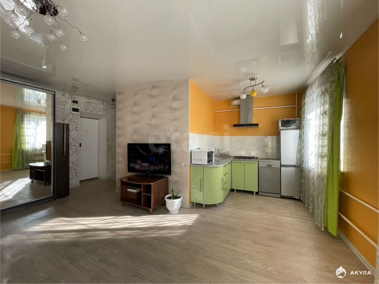 В квартире остается функциональная мебель и бытовая техника, включая газовую плиту. Планировка угловая, обеспечивающая хорошую инсоляцию и тишину благодаря капитальным кирпичным стенам. Расположение на первом этаже является практичным преимуществом. Жилье находится в районе с развитой инфраструктурой: в шаговой доступности расположены школы, детские сады, поликлиники, почта и магазины. Район отличается удобной транспортной доступностью и развитой сетью общественного транспорта. Это надежное и комфортное жилье для постоянного проживания, не требующее дополнительных вложений.