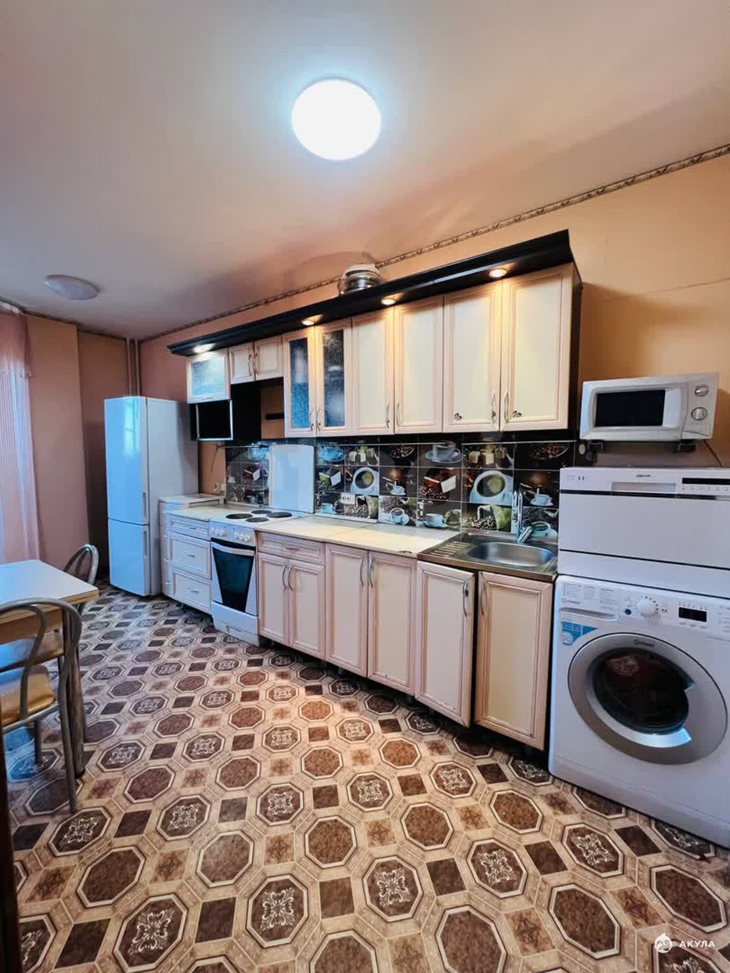 Чистый ухоженный подъезд, два лифта. Во дворе имеются оборудованные детские площадки, благоустроенный двор, в шаговой доступности школа - 10 минут ходьбы , несколько детских садов, продуктовый рынок, магазины Аллея, Хороший и т.д. В доме имеются два продуктовых магазина, озон, стоматология. Рядом с домом спортивный комплекс и строится плавательный бассейн. Припарковаться можно в любое время суток. Транспортная развязка тоже хорошая, возможно добраться в любой район города без пересадок.