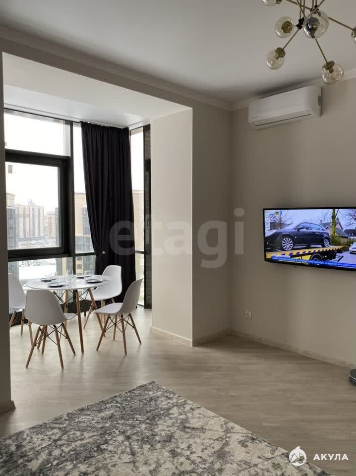 Высота потолков 3 метра создает ощущение простора, а панорамные окна в гостиной-кухне площадью 29 м² обеспечивают обилие естественного света и открывают вид на закрытый, озелененный двор. Планировка продумана: изолированная спальня 10, 2 м², отдельная ванная комната 5 м², функциональный гардероб 6 м² и прихожая 6, 3 м². Объект полностью готов к проживанию — реализована качественная меблировка, установлена вся необходимая бытовая техника и система кондиционирования.