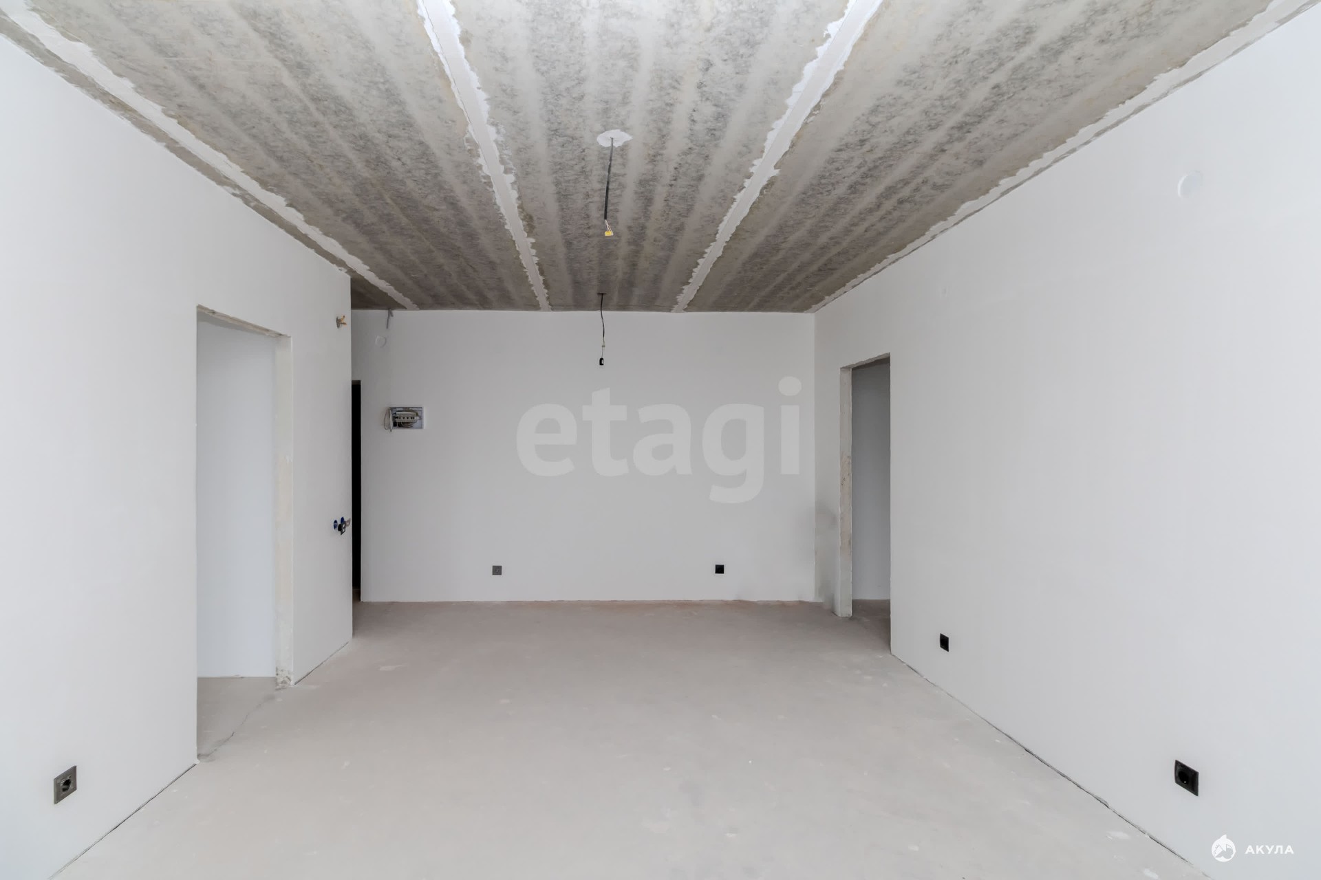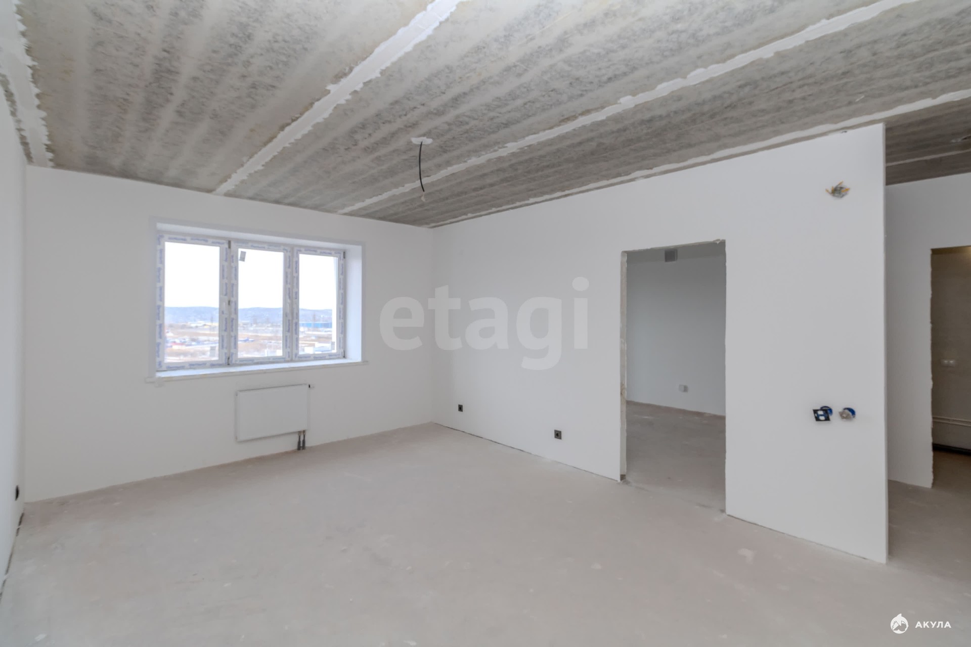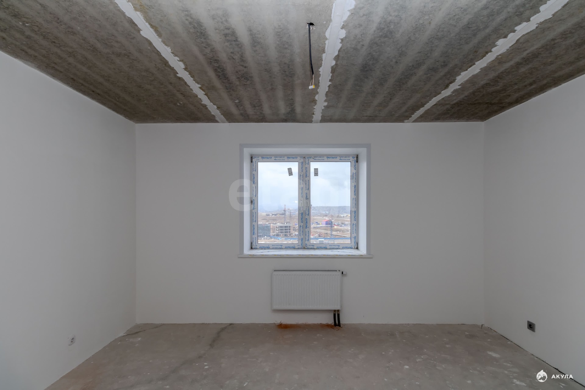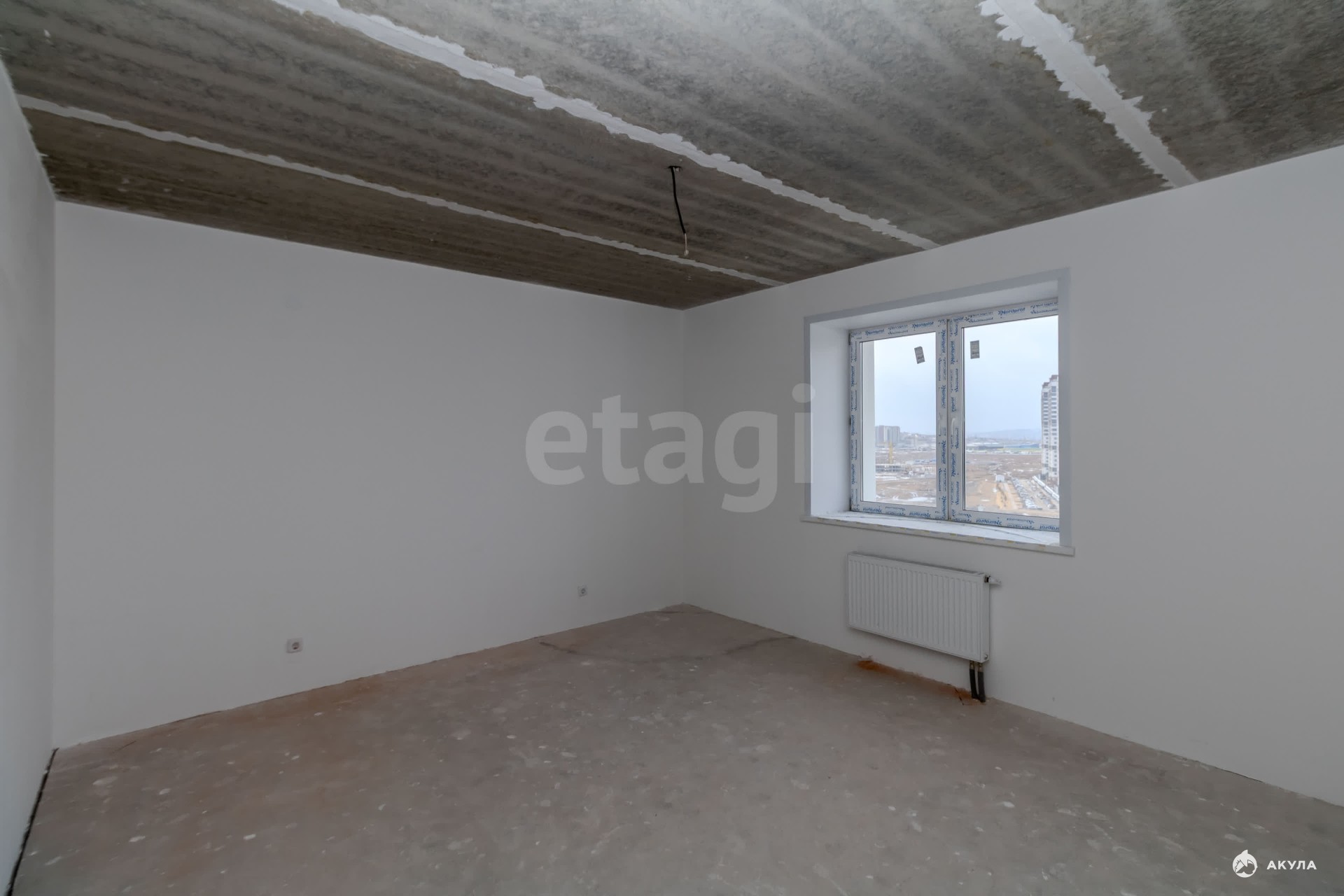 Квартира находится в состоянии "Белый куб": стены оштукатурены, полы выровнены для укладки финишного покрытия, что дает возможность создать интерьер по индивидуальному проекту.