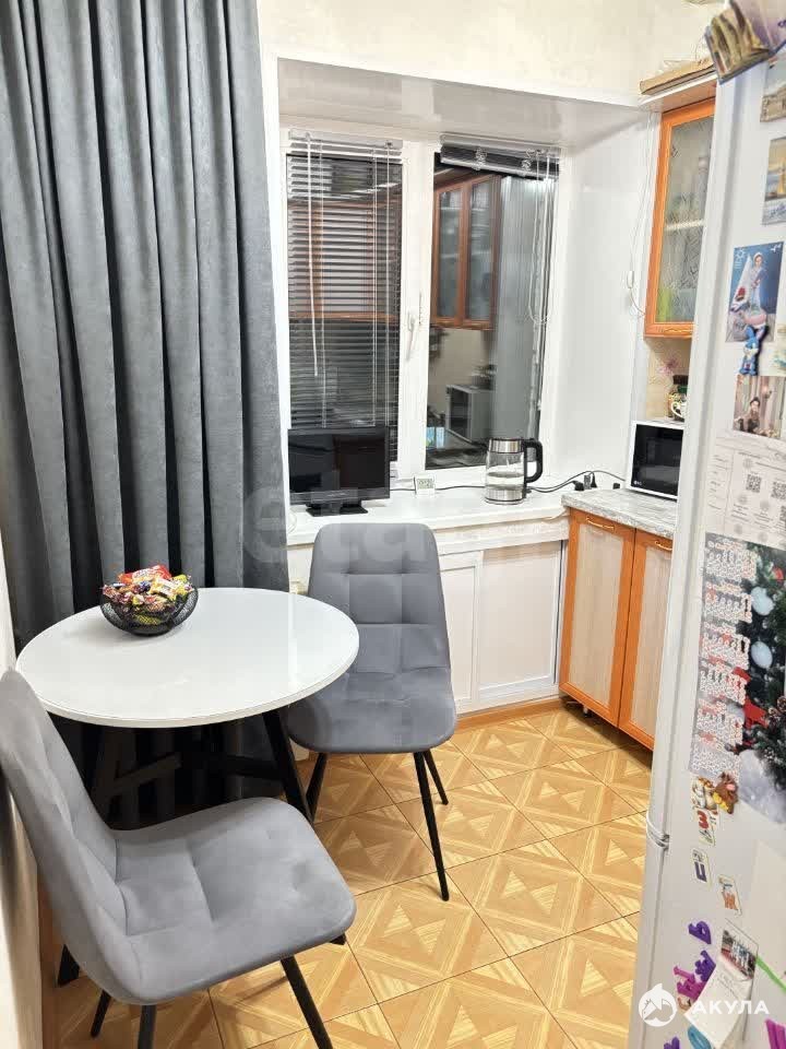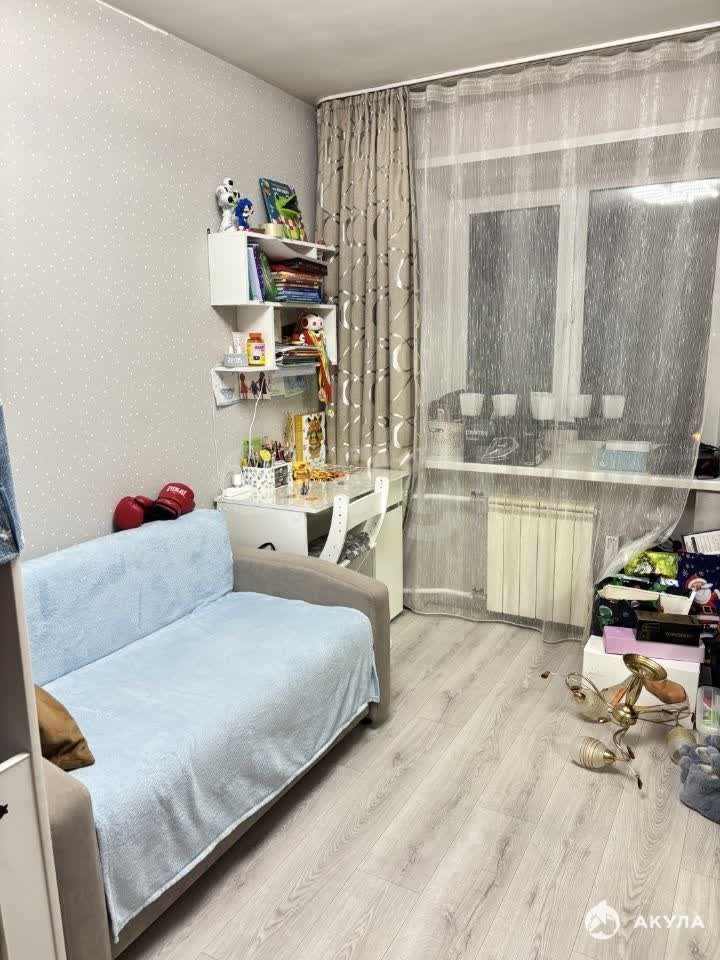 В квартире выполнен косметический ремонт. Сан.узел в кафеле, сан.техника свежая, электро плита. Квартира очень теплая. Балкон застеклен и расширен, сделаны полки.
