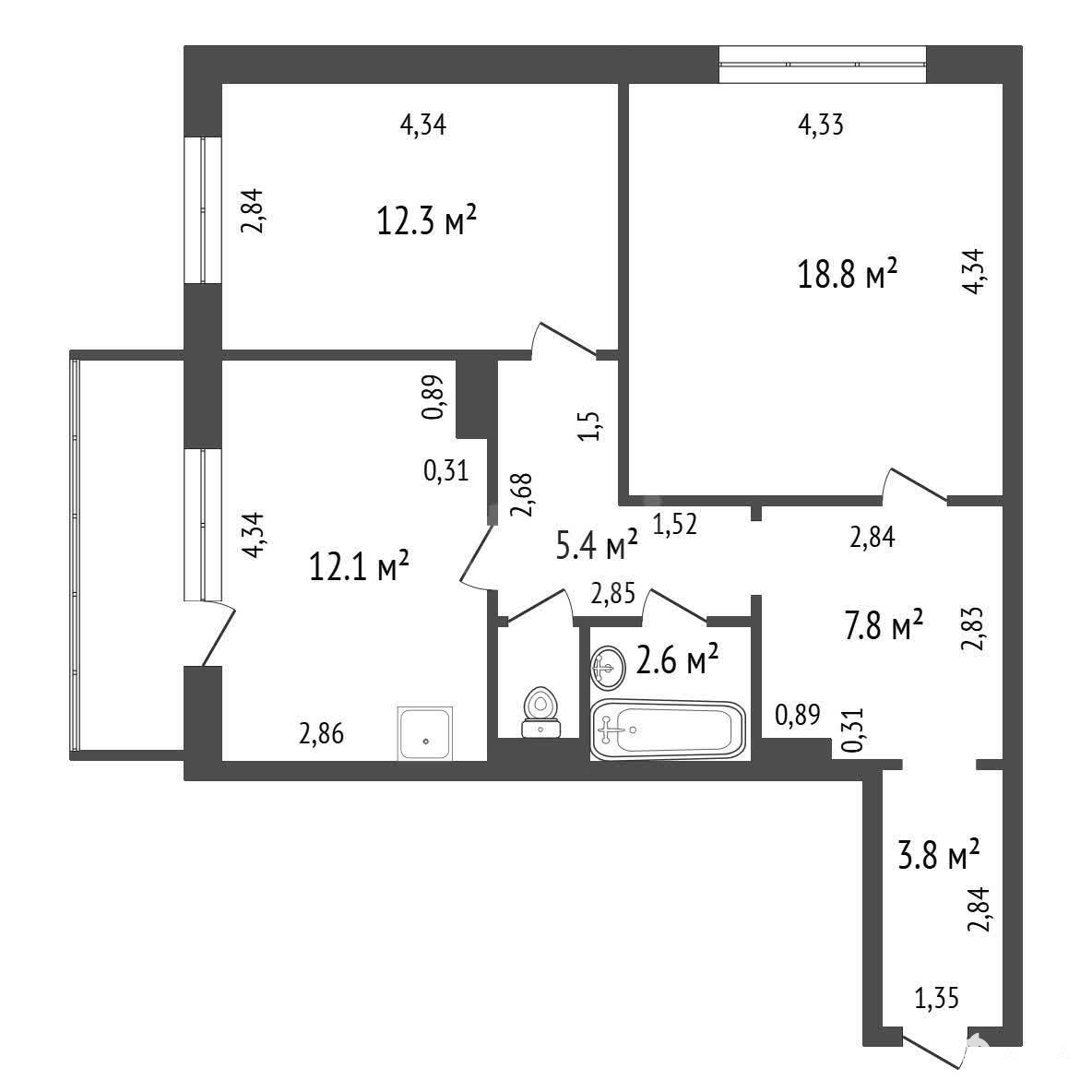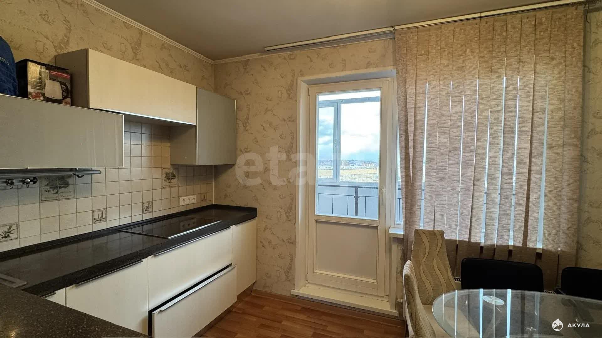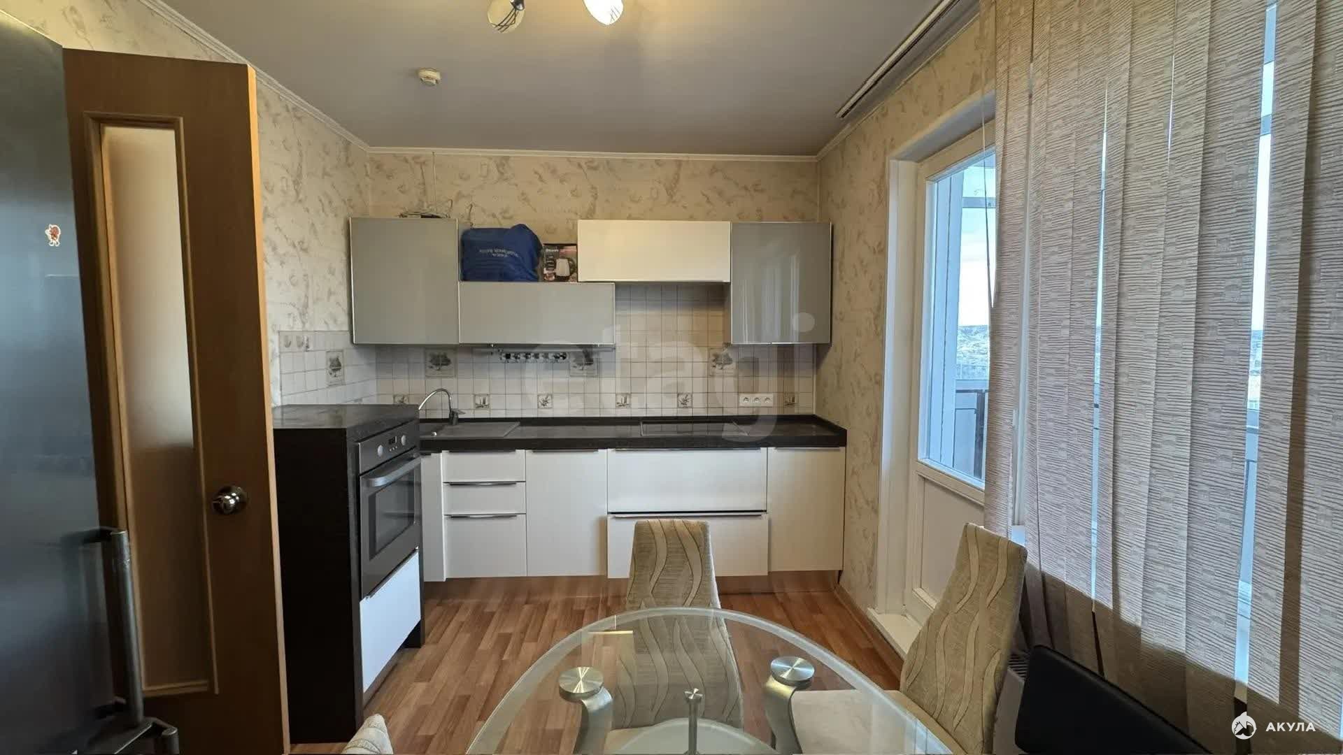 Квартира имеет большой застекленный балкон с выходом из кухни, что увеличивает полезное пространство.