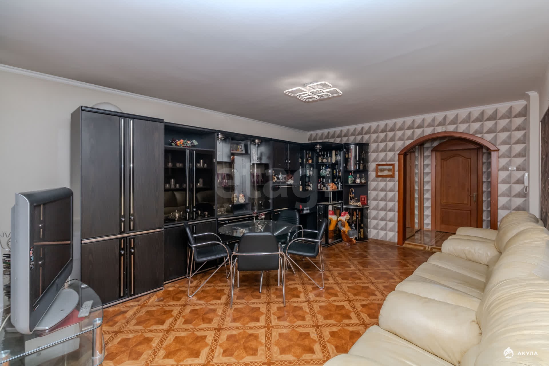 Мебель и техника: Продается с мебелью и бытовой техникой. Встроенный платяной шкаф является дополнительным преимуществом.