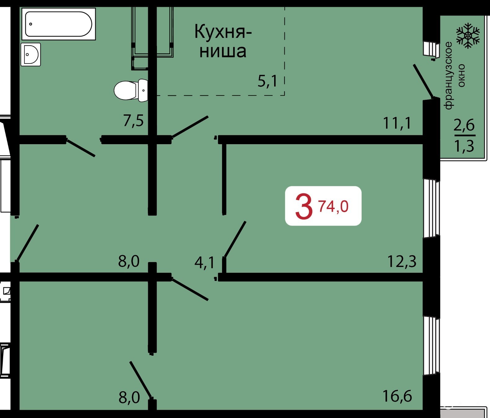 - 74 м²