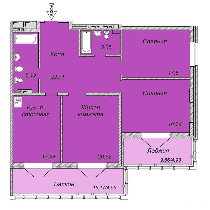 - 17.54 м²