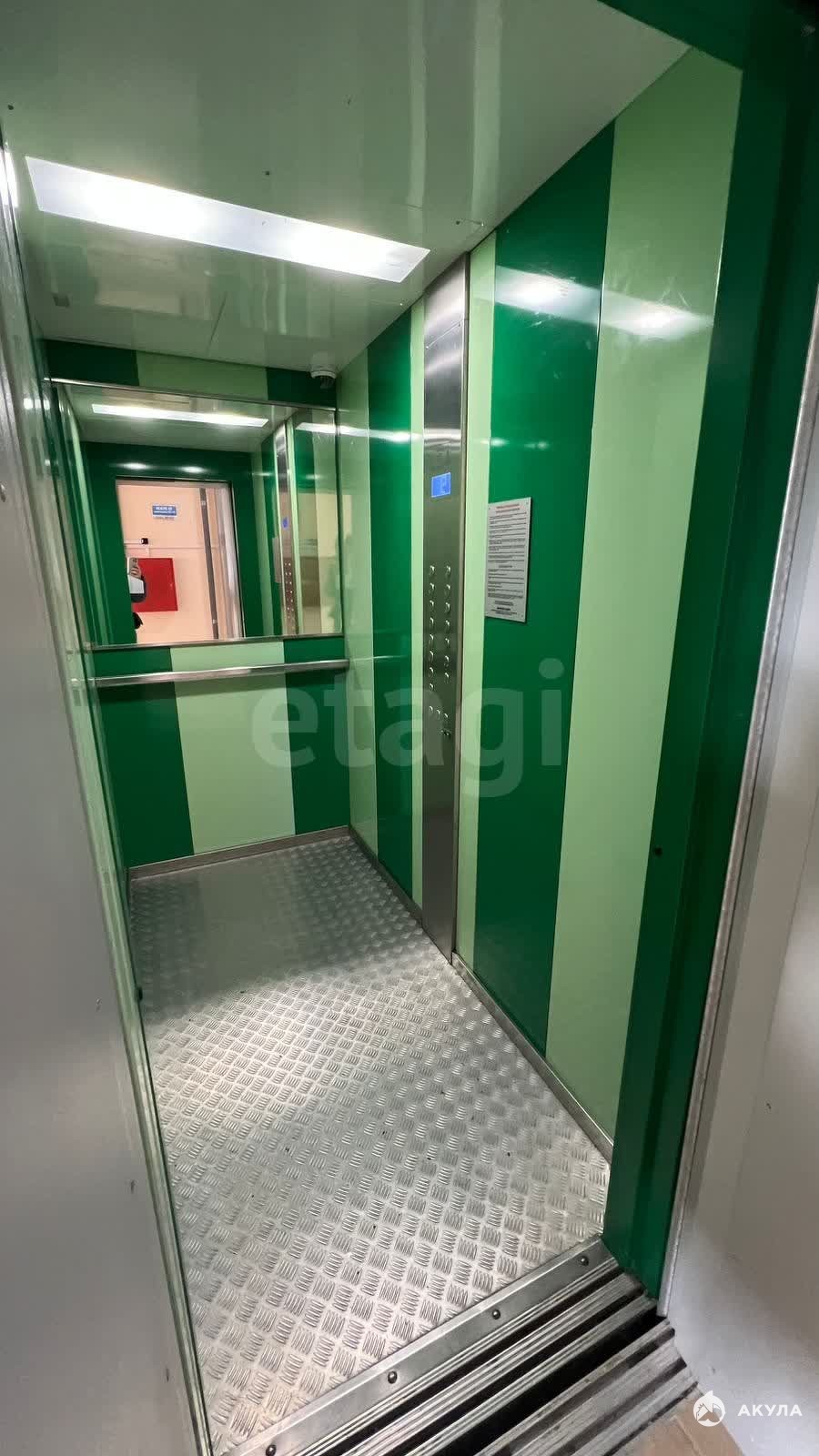 Окна выходят на две стороны, обеспечивая хорошую инсоляцию. Малая комната, ориентированная во двор, подойдет для детской или кабинета, а основная комната с панорамным остеклением на улицу Караульная дает возможность создать современное жилое пространство.