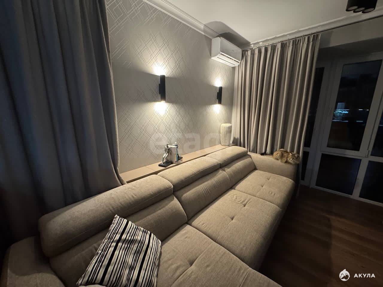Продам уютную трехкомнатную квартиру в современном ЖК на Краснодарской. Квартира расположена на 14-м этаже 17-ти этажного кирпичного дома комфорт класса 2022 года постройки. Общая площадь 54, 8 кв. м. В квартире выполнен качественный современный ремонт: выровнены все полы и стены, заменена проводка, теплые полы, в лоджии на полу керамогранит. Покупателю остается вся новая встроенная техника и мебель: гардеробная, шкафы, кухонный гарнитур (включая холодильник, посудомоечную машину, индукционную варочную поверхность, духовой шкаф), а так же барная стойка со стульями.