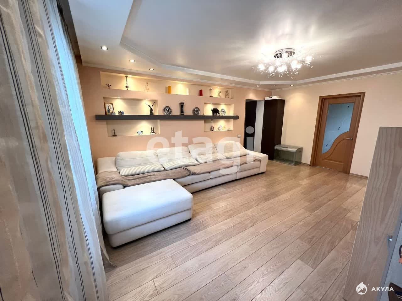 Квартира расположена на 4 этаже, полностью готова к проживанию — капитальный ремонт, ламинат на полу, натяжные потолки, современный кафель в санузле и свежий косметический ремонт в комнатах. Отличная планировка: три изолированные комнаты, просторная кухня 12 м², большой коридор со встроенным шкафом-купе, остекленный балкон и раздельный санузел и благоприятная аура в квартире.