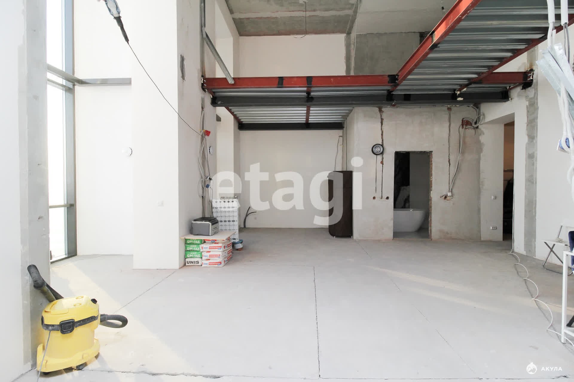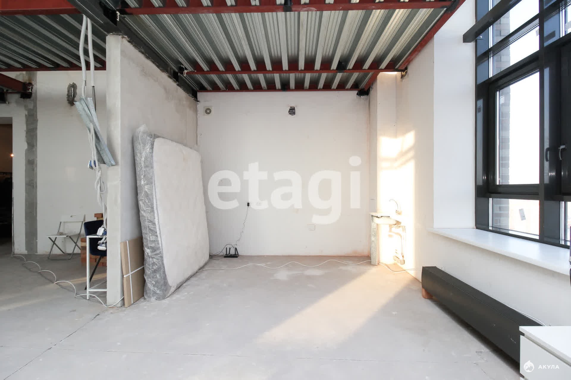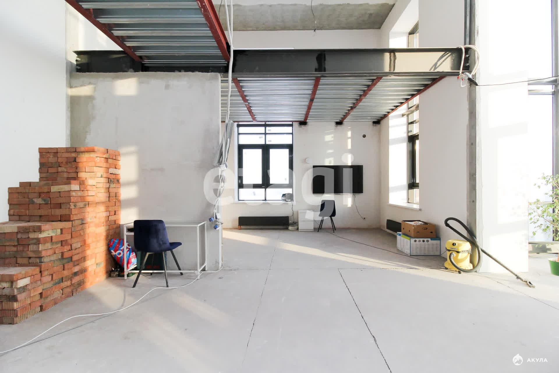 Окна панорамные, есть дополнительно балкон. Высота потолка 5, 8 метров.