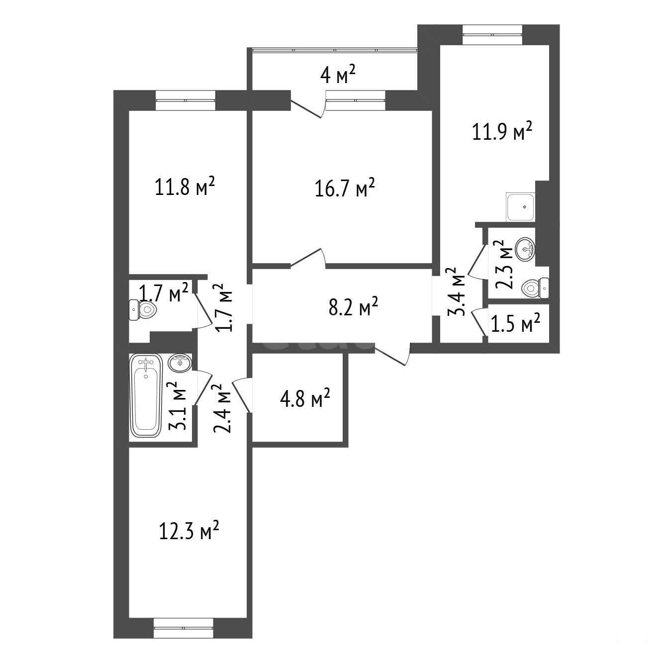 - 11.9 м²