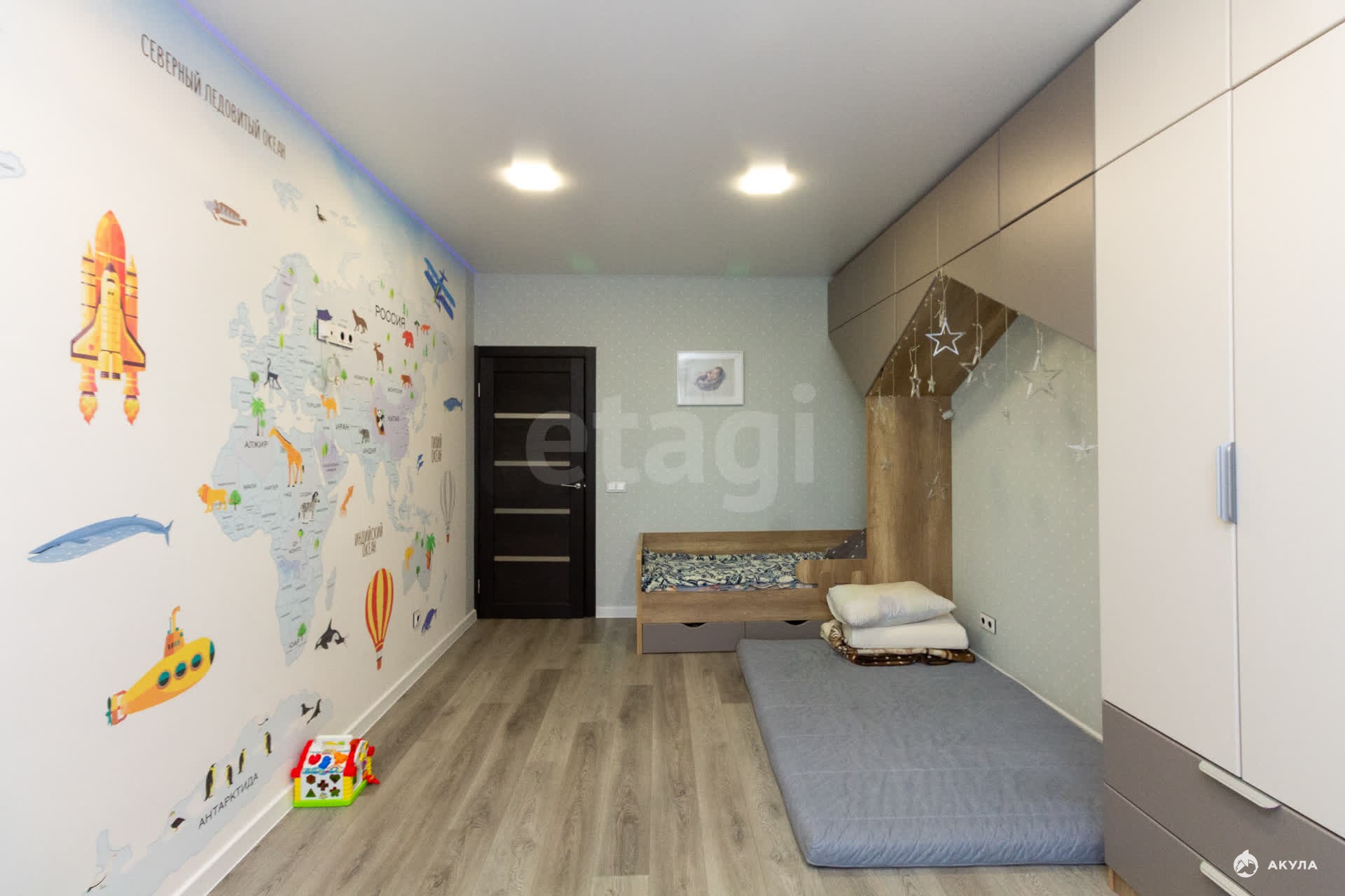 Единственное, что осталось от застройщика — двери, до их замены на красивые дизайнерские не дошли руки, также не успели заказать встроенную мебель в прихожую и 2-ю детскую (в прихожей сделана закладная под шкаф-купе).