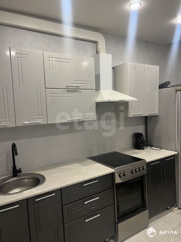 Кухня площадью 9 квадратных метров оборудована современной техникой, включая холодильник и стиральную машину. Санузел раздельный, выполнен в светлых тонах.
