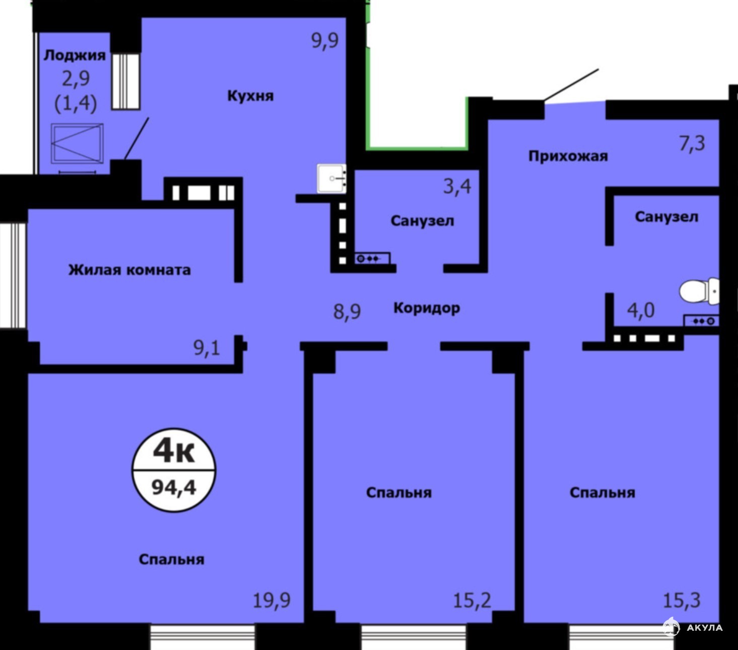 - 94 м²