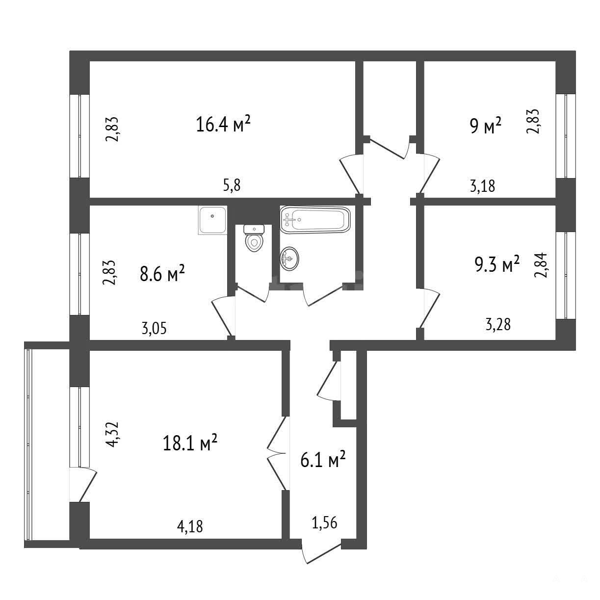 - 68 м²